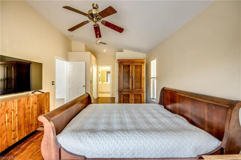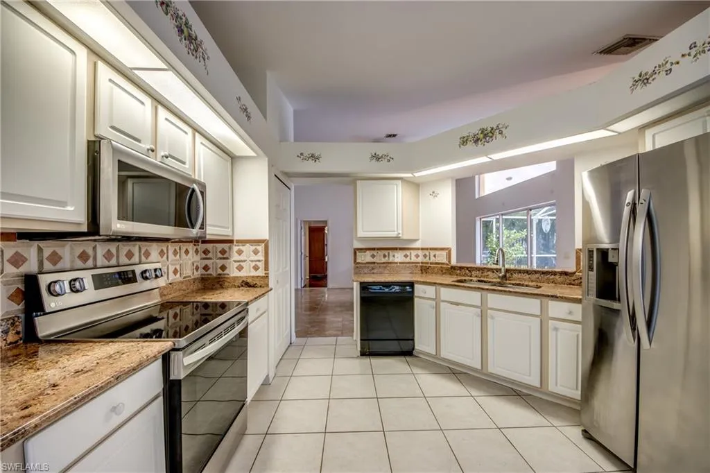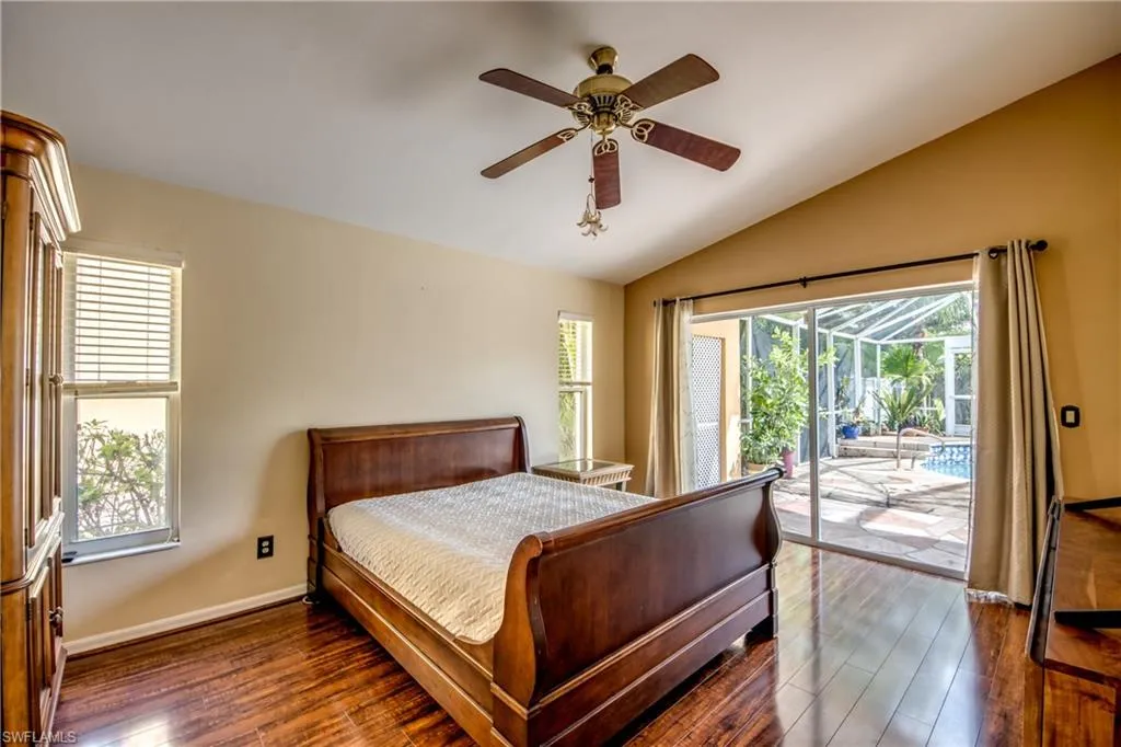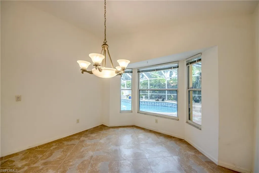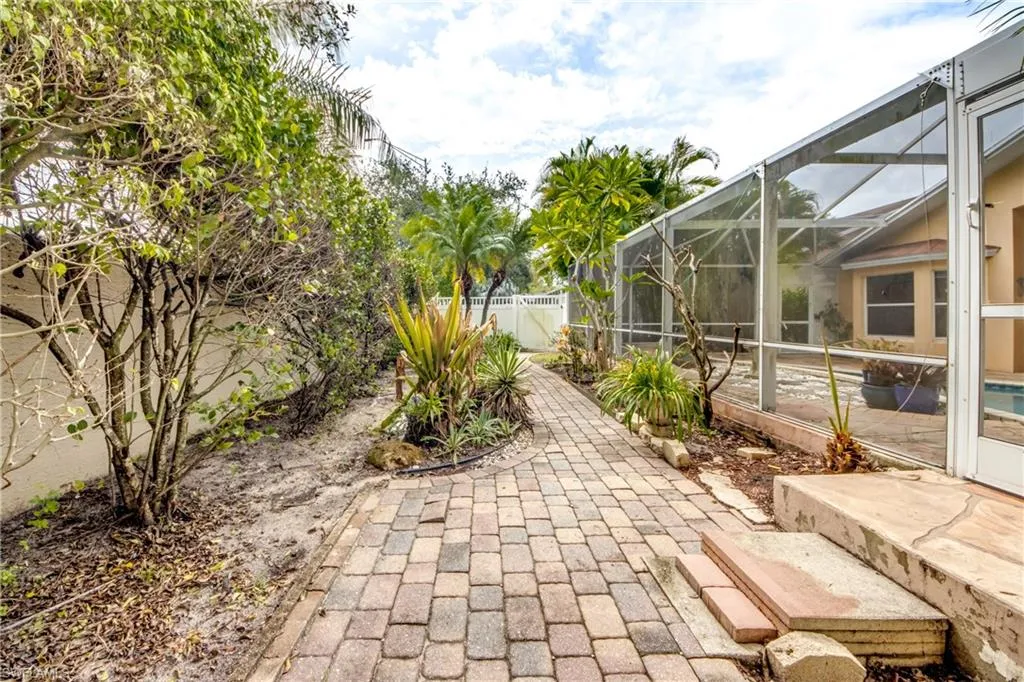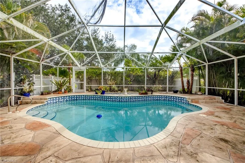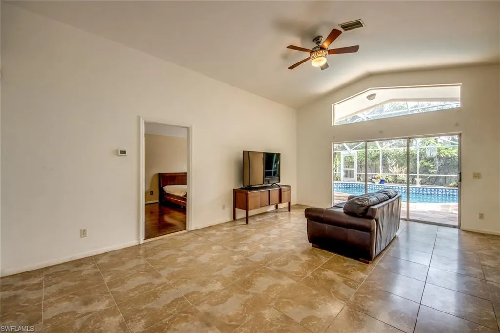 Welcome to 17781 Castle Harbor Drive in Fort Myers where it is all about LOCATION! The Three Oaks Parkway area is best known for its proximity to 75 for easy commuting North or South, minutes from Gulf Coast Town Center, RSW and Hertz arena plus all of the sporting activities at Three Oaks Park. Enjoy the best of Florida living with a screened lanai enclosing your own private pool and overlooking the landscaped backyard. This spacious 3 bedroom, 2 bathroom house has vaulted ceilings, 3 panel pocketing sliders, tile or laminate flooring (with the exception of 1 bedroom), formal dining room and interior laundry room. The large primary bedroom is en-suite including tiled shower, separate soaking tub, two walk-in closets and sliding doors leading to the lanai. An electric roll down shutter is conveniently located at the front entry. Property is located in a “X” Flood Zone where no Flood Insurance is required.