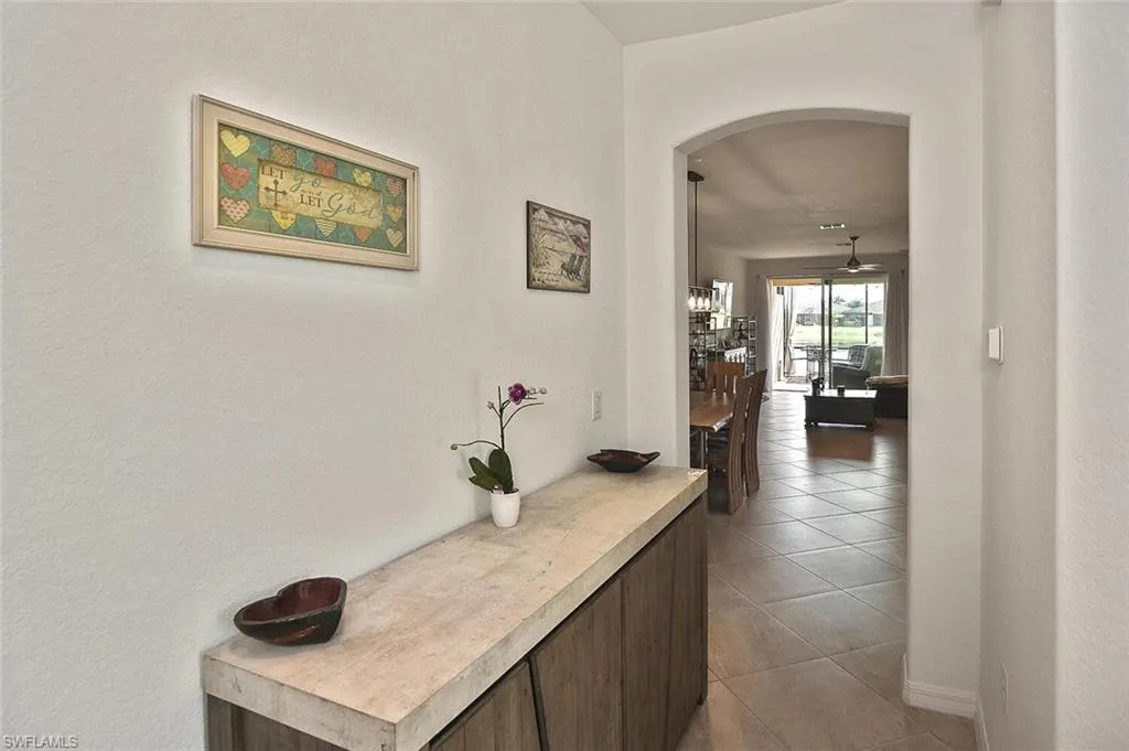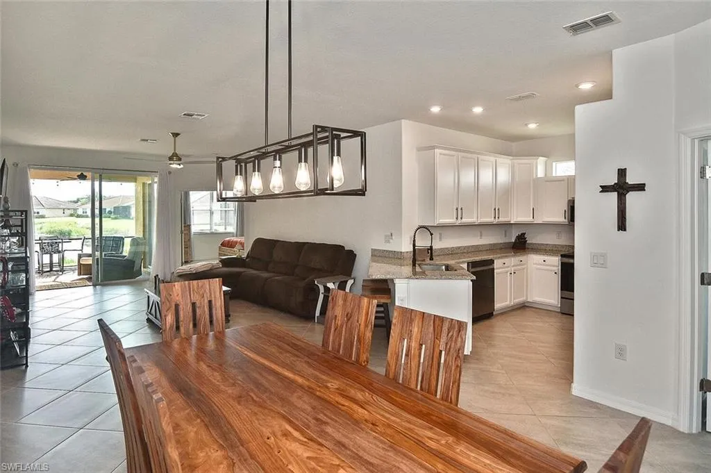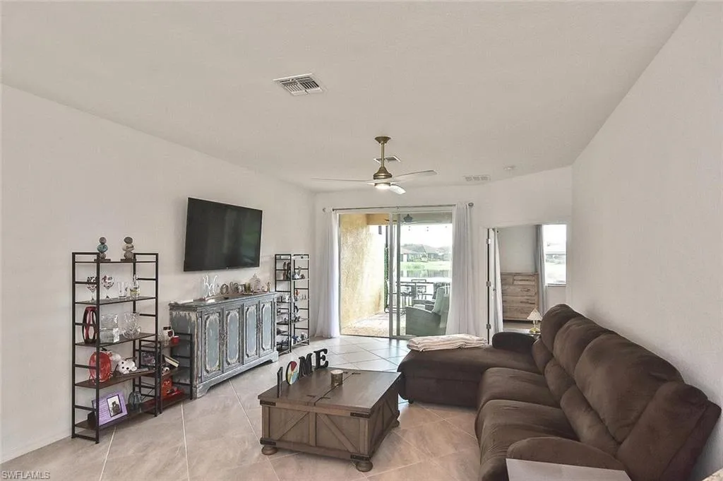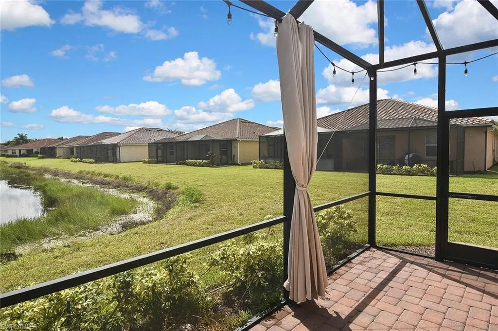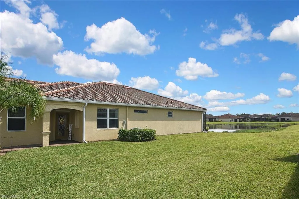 Enjoy spacious living in this beautifully maintained 2+Den, 2-bath home with a 2-car garage, perfectly situated on an oversized end-unit lot. The prime location offers added privacy, a generous yard, and peaceful lake views surrounded by lush landscaping. Step inside to an open-concept floor plan featuring split bedrooms, a large dining area, and a stunning kitchen with upgraded fixtures and finishes. The expansive lanai is ideal for seamless indoor-outdoor living and entertaining. The master suite boasts a walk-in closet, master bath with dual sinks, and a frameless glass shower enclosure. Guests will appreciate the spacious bedrooms with ample storage. Thoughtful upgrades throughout the home include stylish light and plumbing fixtures, ceiling fans (including the lanai), modern hardware, beautiful, angled tile flooring, garage shelving, and epoxy-sealed garage floors. With only 3 years of age, this immaculate home offers low-maintenance living. The community features low HOA fees that cover lawn care, irrigation, and access to incredible amenities: a newly renovated clubhouse, two resort-style pools and spas, tennis, basketball, and volleyball courts, fitness center, playground, bike paths, and secure gated entry. Conveniently located just minutes from a new shopping complex with a grocery store soon to be completed. This home truly has it all—comfort, convenience, and resort-style living.