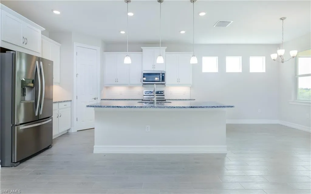 Like new Shelby floor plan in Stonewater! This single-level home offers 3 bedrooms + den, 2.5 baths, and a 32-foot deep garage. Upgrades include 42” cabinets, granite countertops, stainless steel appliances, 8’ doors, upgraded base/casings, and multiple tray ceilings. Located in Cape Coral—one of the fastest growing cities in Florida! Stonewater is a premier gated community with resort-style amenities: pool, fitness center, tennis, pickleball, and playground. Close to restaurants, shopping, etc…