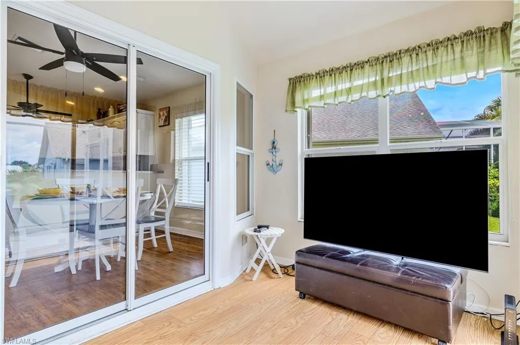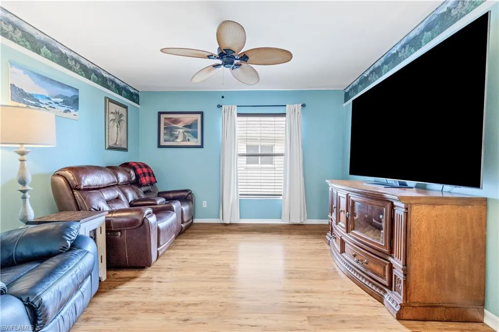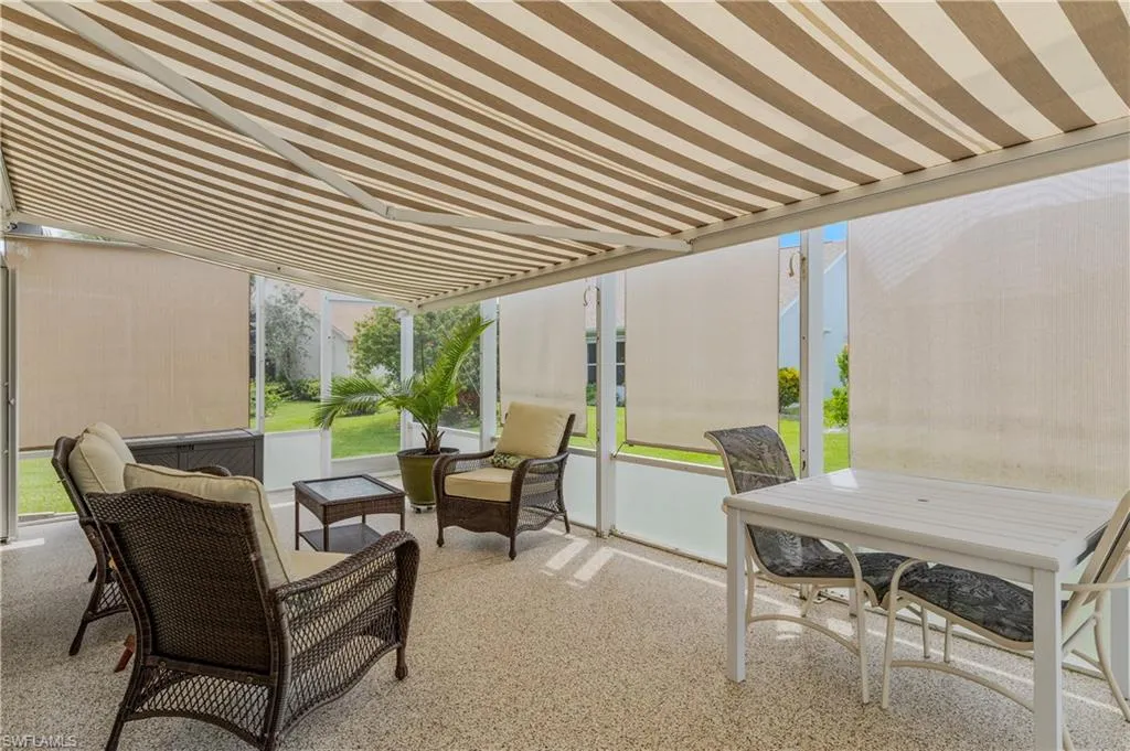 Enjoy outdoor living on the 44′ x 12′ screened lanai with brand-new retractable electric awning and flooring (2024)—perfect for entertaining.