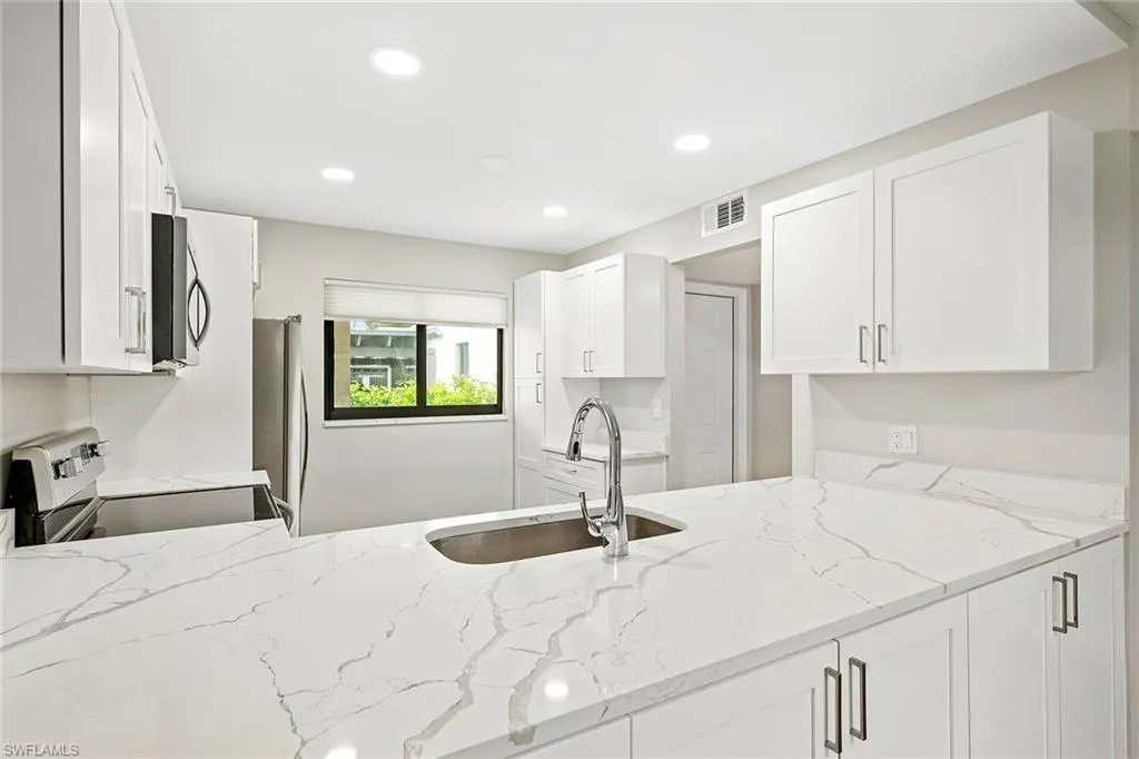 Fantastic ground-floor unit — just steps from the clubhouse! This fully renovated home offers a fresh, modern interior with all-new appliances, a brand-new A/C system, and stunning quartz countertops with shaker-style cabinets throughout. Enjoy two private screened-in lanais, spacious walk-in closets off both bedrooms, and the convenience of being only steps from the community pool. Covered parking is included, making this home as practical as it is stylish.