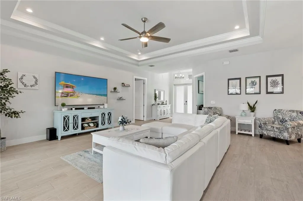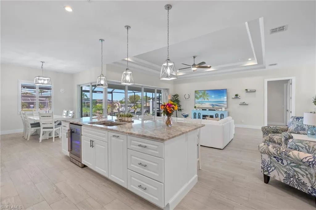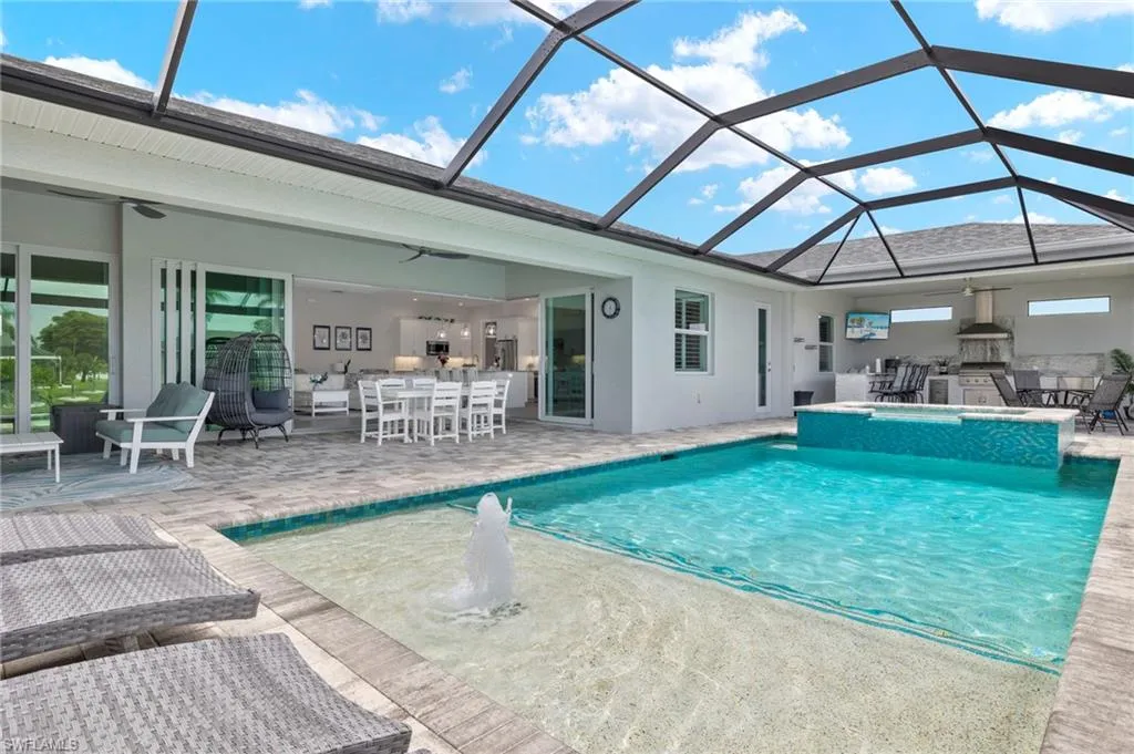 This 2022 custom-built Gulf access pool home captures the essence of Florida waterfront living with a perfect balance of luxury and comfort. Situated on the 95-ft-wide Courtney Canal in the desirable Pelican neighborhood, it offers quick boating access, peaceful kayaking at sunset, and a private backyard oasis for year-round relaxation. From the moment you arrive, you’ll be impressed by the wide paver driveway, tropical landscaping, and coastal-modern façade. Inside, soaring tray ceilings, plank tile flooring, and zero-corner sliders create seamless indoor-outdoor living. Natural light fills the open floor plan, showcasing designer finishes and exceptional craftsmanship throughout.