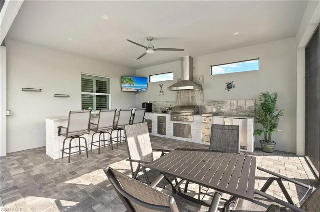 The outdoor area is the heart of this home, offering a screened lanai that feels like your own private resort. Enjoy a heated saltwater pool and spa with Bluetooth smart controls, an outdoor kitchen with built-in grill and bar island, dual outdoor TVs, and an electric fireplace for cozy evenings under the stars. Just beyond, a custom wood-burning firepit overlooks the canal—perfect for gatherings or quiet nights by the water. Additional highlights include an air-conditioned 3-car garage, impact-rated windows and doors, city utilities paid in full, and no flood insurance required.