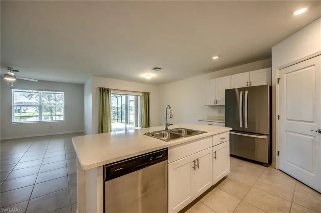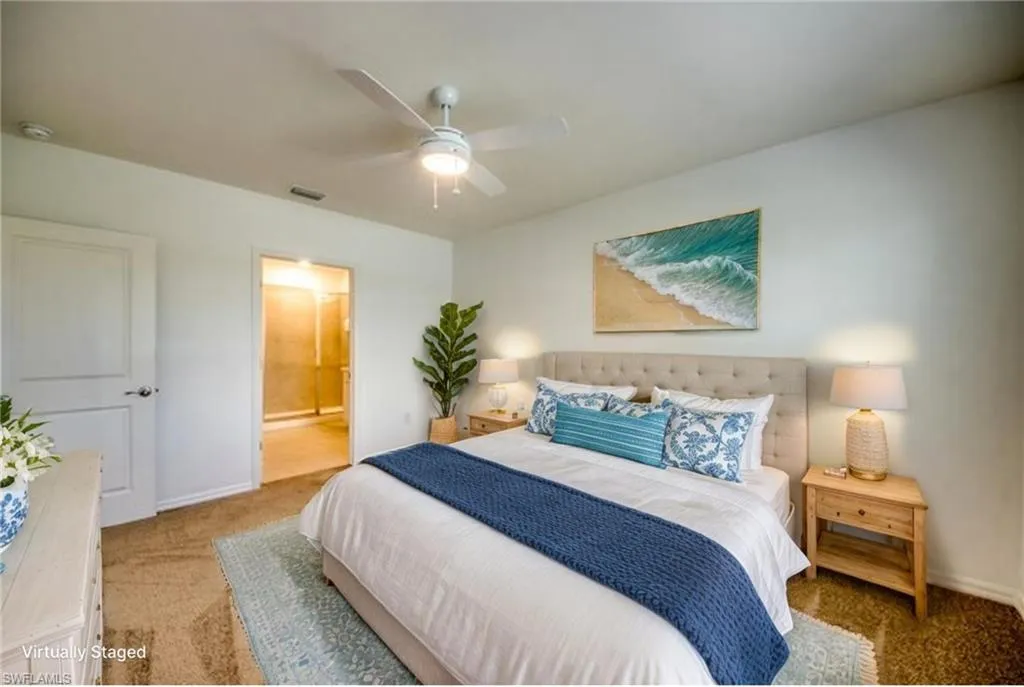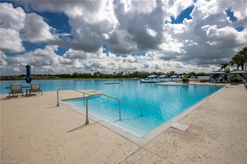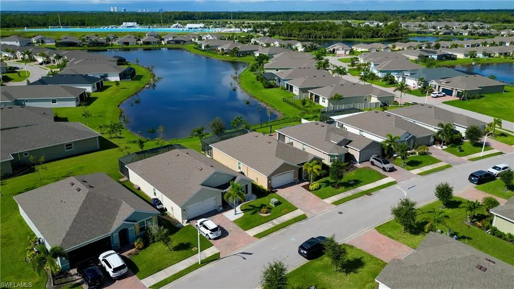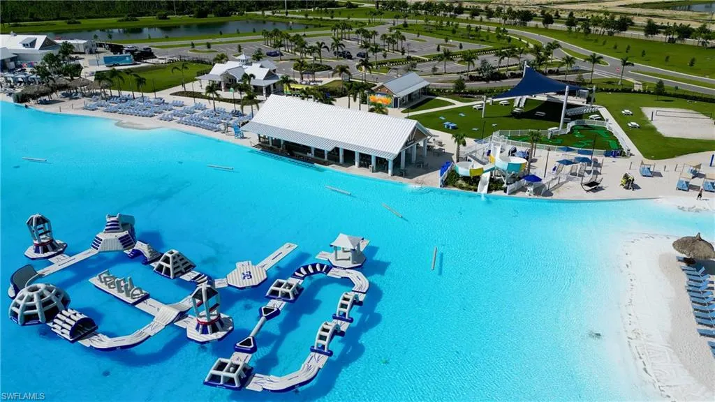 The BEST OF BRIGHTWATER living awaits — sparkling lagoon days, white sandy beaches and your own NEARLY NEW LAKEFRONT RETREAT just appeared for YOU! Live the Brightwater lifestyle TODAY — without the delays, hidden builder costs or added closing costs! This lakefront beauty offers the perfect blend of resort-style living, an ALMOST-NEW home with STUNNING EXTENDED LANAI and an AMAZING 3.375% ASSUMABLE MORTGAGE (call for details). Builders often pass along normal seller closing costs and require buyers to use their preferred lenders and title companies, which can mean higher fees compared to local, competitive options. With this home, you can skip the wait, skip the extras fee’s and start enjoying everything Brightwater has to offer today. This beautifully maintained Cali model by D.R. Horton features 4 bedrooms, 2 bathrooms, 2 car garage and a sunny, open great room floor plan designed for modern Florida living … both bright and inviting. One of the true highlights of this home is its long, serene lake views — the kind of backdrop that instantly makes every day feel like a retreat. And then there’s the oversize extended lanai with southern exposure, an outdoor sanctuary spanning the entire width of the home (over 700 square feet)! Whether you dream of a hot tub, hammock, alfresco dining or a children’s play area, this backyard delivers the ideal setting to make it happen. Inside, stylish upgrades make this home stand out: 18” ceramic tile in the main living areas, Quartz counters, stainless steel appliances, arched entryways, new carpeting and fresh interior paint. Thoughtful details like double-pane low-E windows, smart-home features, paver driveway and hurricane shutters add convenience and peace of mind. This home is truly move-in ready, giving you a nearly new property without the builder price tag. And then there’s Brightwater — Southwest Florida’s one and only lagoon community, offering a lifestyle unlike anything else in the area. At its heart is a spectacular six-acre tropical lagoon with white sandy beaches and private cabanas, creating the perfect year-round vacation vibe. Spend your days kayaking, paddleboarding or simply soaking up the sun. Looking for more adventure? Tackle the floating obstacle course, grab a drink at the swim-up bar or enjoy poolside refreshments while you unwind. You’ll enjoy miles of scenic walking and biking trails, dog park, playground, solar-powered streetlights, high-speed internet and secure gated entry. Residents love the year-round live music and food trucks, an active social calendar packed with events and a friendly, welcoming atmosphere. With low HOA fees of just $263 per quarter (which includes high speed internet) and a community that’s EV golf cart friendly, pet friendly and rental friendly, Brightwater delivers the ultimate combination of flexibility, fun and value. NO FLOOD INSURANCE REQUIRED! Let’s Go!