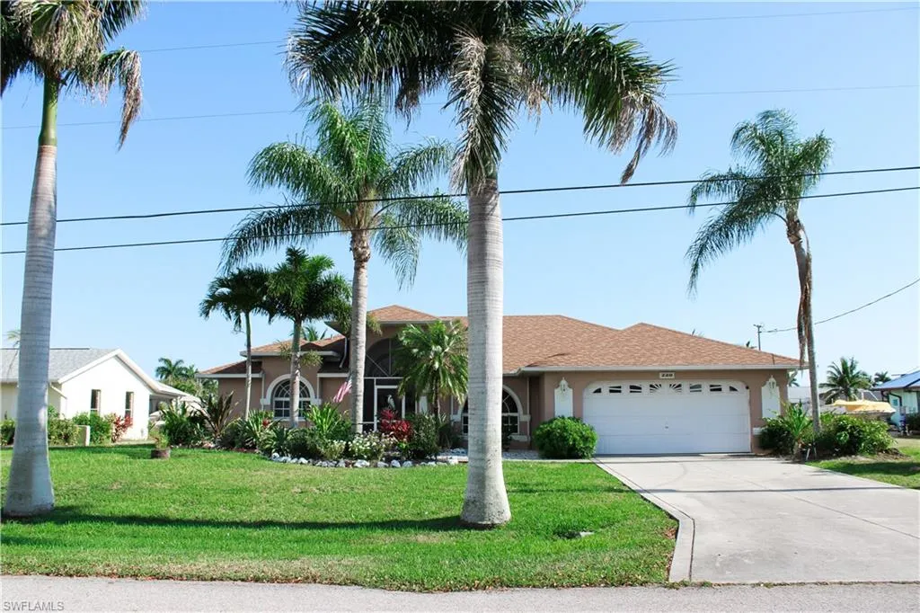 Gulf-Access Waterfront Paradise with Southern Exposure & Countless Upgrades! Welcome to your Cape Coral dream home! This beautifully renovated 3 bedroom, 2 bath pool home sits on the wide Mast Canal with sought-after southern exposure. Upgrades include a modern kitchen, new flooring, newer AC, air handler, pool heater, a brand-new picture-frame screened lanai, and a newer roof (2021). The split floor plan offers comfort and privacy, while pocket sliders create seamless indoor-outdoor living. Relax by the sparkling pool and spa or enjoy fishing and boating right from your backyard. The spacious master suite features dual sinks, a walk-in closet, and a separate tub and shower. Surrounded by lush tropical landscaping, the backyard offers both privacy and a true Florida retreat. With all assessments paid and a prime location near shopping, dining, parks, and quick access to Fort Myers, this move-in ready home perfectly combines modern upgrades, ideal location, and the ultimate waterfront lifestyle.