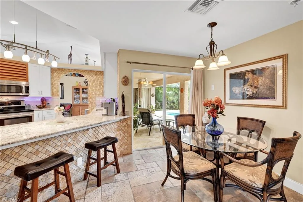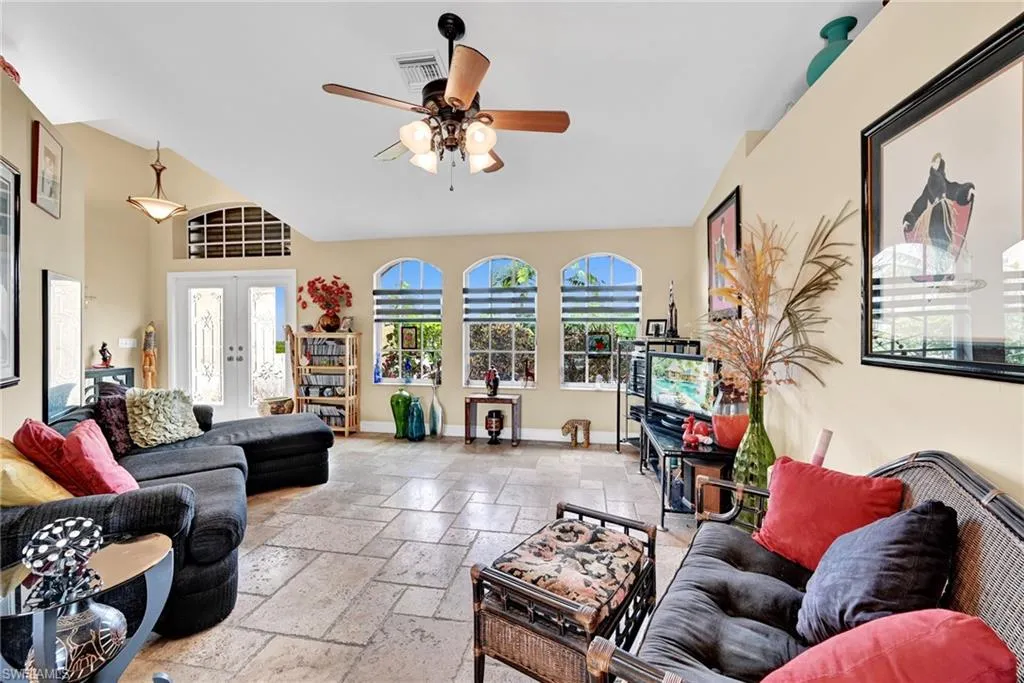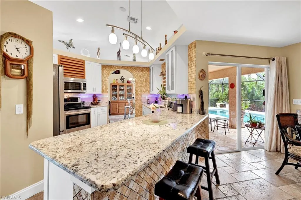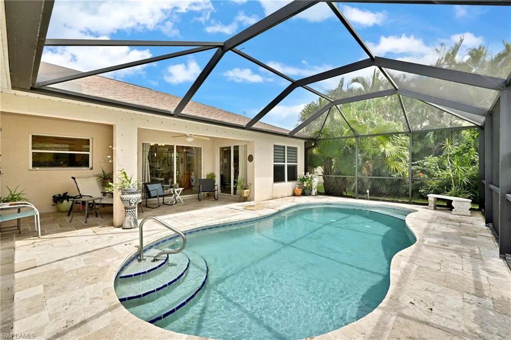 Experience the best of Southwest Florida living in this beautifully maintained 3-bedroom, 2-bath pool home with a versatile den, offering 1,818 square feet of comfort and style. Located in the desirable SW Cape Coral area, this residence boasts a thoughtfully designed split floor plan and a spacious 2-car garage. The upgraded kitchen features granite counters, stainless steel appliances, soft-close cabinets, and a stylish tile backsplash. Travertine tile flows seamlessly throughout the home, enhancing its elegant feel. Step outside to your private backyard oasis, complete with a screened-in lanai, sparkling pool, lush landscaping, and fruit trees. Additional highlights include a circular driveway, sprinkler system, laundry room with utility tub, and hurricane shutters for peace of mind. Conveniently located near top restaurants, downtown Cape Coral, Cape Harbor, Tarpon Point, and with easy access to Punta Gorda and RSW airports, this home blends comfort, convenience, and Florida lifestyle living.