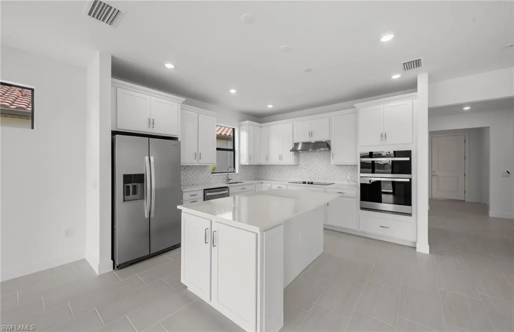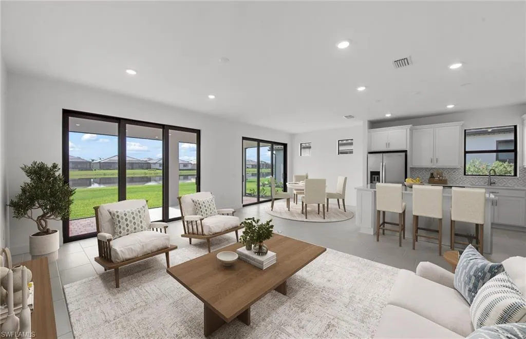 This spacious Prosperity floor plan features 2 bedrooms, 2 baths, plus a versatile den, along with a 2-car garage that includes a 4’ extension. The gourmet kitchen is equipped with built-in stainless steel appliances and elegant quartz countertops. The owner’s suite offers a large bedroom with a walk-in shower, while the extended screened and covered lanai provides the perfect space for outdoor living. Enjoy your upgraded Cafe sliders to expand your everyday living space for indoor outdoor living. Located in Del Webb Naples, a premier 55+ resort-style community, residents enjoy access to over 30,000 square feet of amenity space across two stunning clubhouses: The Oasis Club and Grand Hall. The community is home to an 18-hole championship golf course (optional membership), two resort-style pools including an 8,000 sq. ft. beach-entry pool and a lap pool, a fitness center, movement studio, golf simulator, fire pit lounge, and The Rusty Putter Bar & Grille. Outdoor enthusiasts will love the 12 lighted pickleball courts, tennis courts, bocce ball courts, community garden, and miles of walking and biking trails. With a full calendar of events—including game nights, fitness classes, arts & crafts, and social gatherings—Del Webb Naples offers an unmatched lifestyle designed for relaxation, recreation, and connection. Live the active adult lifestyle you’ve dreamed of in a beautifully upgraded new home.