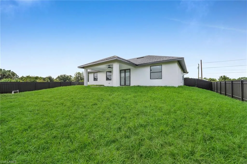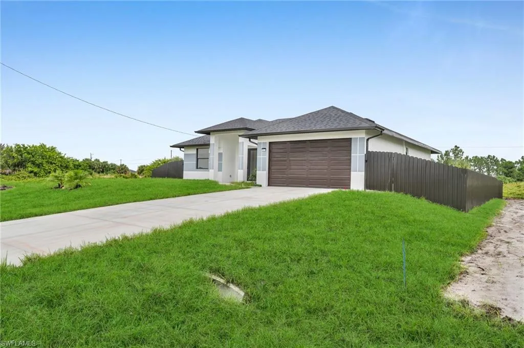 Brand-new 2025 construction in Lehigh Acres, perfectly located near Highway 82 for easy access to shopping, dining, and commuting. This stunning home is move-in ready and sits on a fully fenced lot, providing privacy and security. Featuring modern finishes, open-concept living spaces, and a spacious layout perfect for families or entertaining.