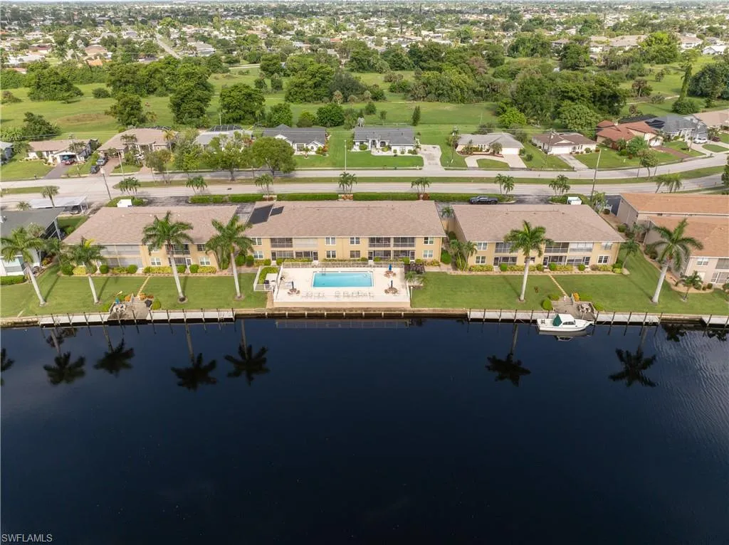 Major Price Reduction! Welcome to your piece of paradise in this beautifully maintained 2nd-floor condo! Enjoy this Turnkey 2 bed, 2 bath condo in a desirable 55+ community on the 200-foot-wide Rubicon Canal with Gulf access. This 2nd floor home features granite countertops in the kitchen and both bathrooms, a spacious island with seating, updated guest bath, front sitting room, and a primary suite with walk-in closet. Ceiling fans are found throughout, and a new washer and dryer were added in 2024. Recent updates include a new roof, new carports, HVAC in 2021, and the condo includes hurricane shutters for peace of mind. The condo is sold Fully Furnished, so you can move right in and start enjoying the Florida lifestyle. Community amenities include a heated pool with grill and tiki area, along with six shared dock spaces available on a first-come basis. The HOA provides low-maintenance living with trash, water, sewer, pest control, pool care, and landscaping all included. This is a non-rental, no-pet, no-smoking community offering serene waterfront living in Cape Coral—just bring your suitcase and enjoy your waterfront views of the largest canal in Cape Coral from your screened in lanai!