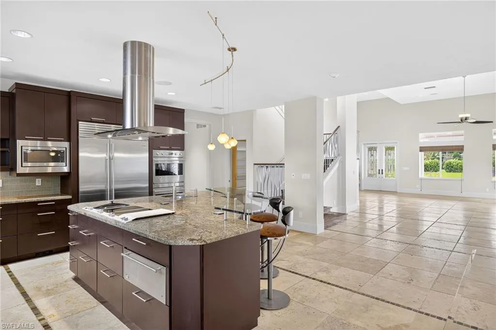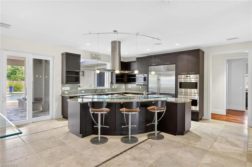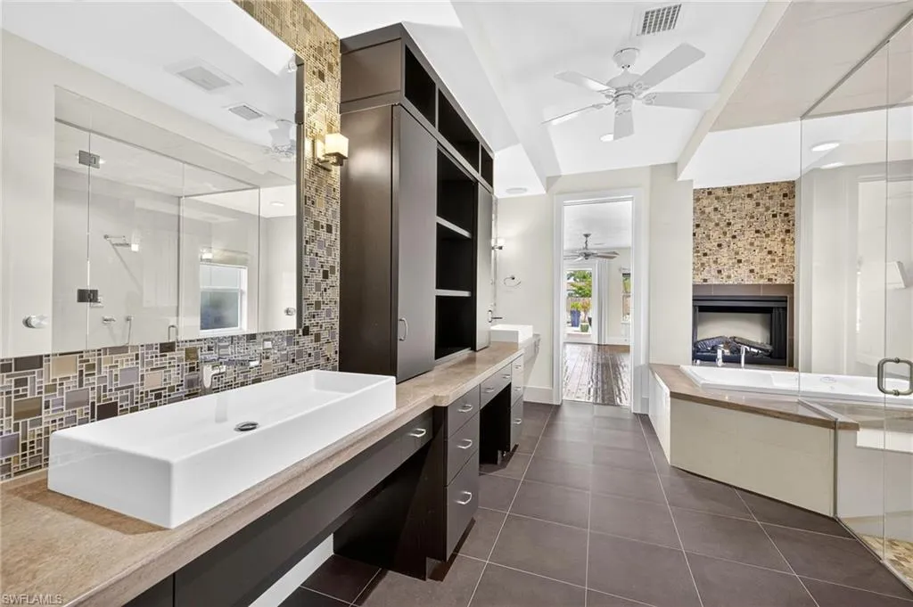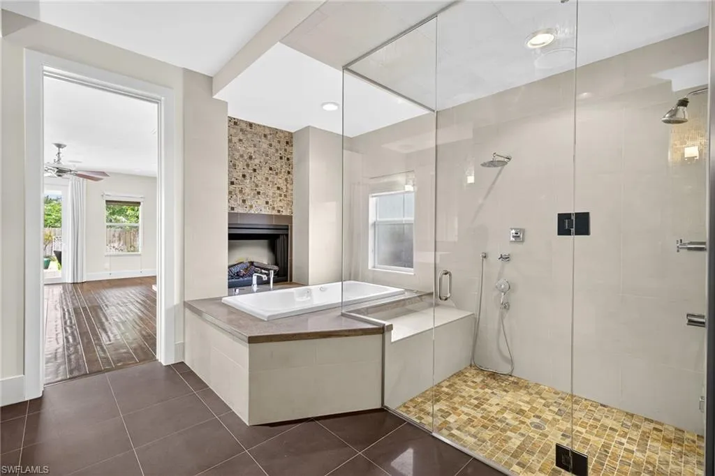 This exquisite residence is a rare jewel along the coveted historic McGregor corridor—an architectural statement of elegance, sophistication, and timeless Florida living. Built in 2009 as a custom retreat, every detail has been thoughtfully curated to balance refined interiors with a lush outdoor sanctuary. Step into a private paradise where secret gardens and meandering pathways are framed in handcrafted Beldon brick pavers, seamlessly guiding you toward the resort-style pool and spa. Here, the art of outdoor living comes alive: a fully equipped summer kitchen, an expansive covered lounge, and a warm, wood-burning fireplace create the ultimate setting for entertaining under starlit skies. Enclosed within a beautifully landscaped, fenced yard, the verdant greenscape offers both serenity and seclusion. Inside, grandeur unfolds beneath soaring two-story ceilings, where an open living room centers around a dramatic fireplace and gleaming African hardwood “Wenge” floors. The chef’s kitchen is an entertainer’s dream—anchored by an oversized island, custom cabinetry, and sleek Gaggenau steel appliances—designed for gatherings that flow effortlessly between elegance and ease. Distinctive spaces add to the home’s allure: a richly appointed office, plus an additional flexible space ideal as a second office, music studio, or creative retreat, each with custom built-ins. Upstairs, a second-story living area extends the home’s versatility and charm. The primary suite is a sanctuary unto itself, with walls of glass inviting tranquil views of the pool and gardens. A dual-sided fireplace brings warmth and intimacy to both bedroom and spa-inspired bath, where bespoke Wenge cabinetry, Italian sinks, and a luxurious walk-in shower set the stage for indulgence. Every element of the home speaks to craftsmanship and comfort: PGT hurricane impact glass throughout for peace of mind, tongue-and-groove cypress ceilings adding architectural character, and a structured audio system to enrich everyday living. Rarely does a residence so perfectly blend refined design with a tropical oasis lifestyle. This is more than a home—it is an experience, an escape, and an extraordinary offering along one of Southwest Florida’s most storied avenues.