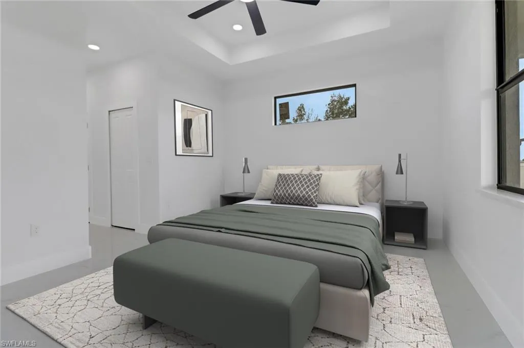 Welcome to your dream home in Cape Coral! This stunning single family home boasts 3 bedrooms, 2 bathrooms, and a 2 car garage, perfect for a growing family or those who love to entertain. The office space provides a quiet retreat for working from home or studying. The kitchen features granite counters, stainless steel appliances, and 42″ cabinets, making it a chef’s paradise. The tile flooring throughout the home adds a touch of elegance.High ceilings and impact windows and doors create a bright and airy atmosphere, while LED lights and ceiling fans add a modern touch.The master bathroom is a true oasis with a soaking tub, shower, and granite countertops. The walking closets with custom organizers ensures that your wardrobe stays organized and clutter-free.Step outside to the tile lanai and enjoy the Florida sunshine in your private backyard with a sprinkler system for easy maintenance. This new construction home has everything you could want and more, making it the perfect place to call home in Cape Coral. Don’t miss out on this opportunity to live in luxury and comfort!