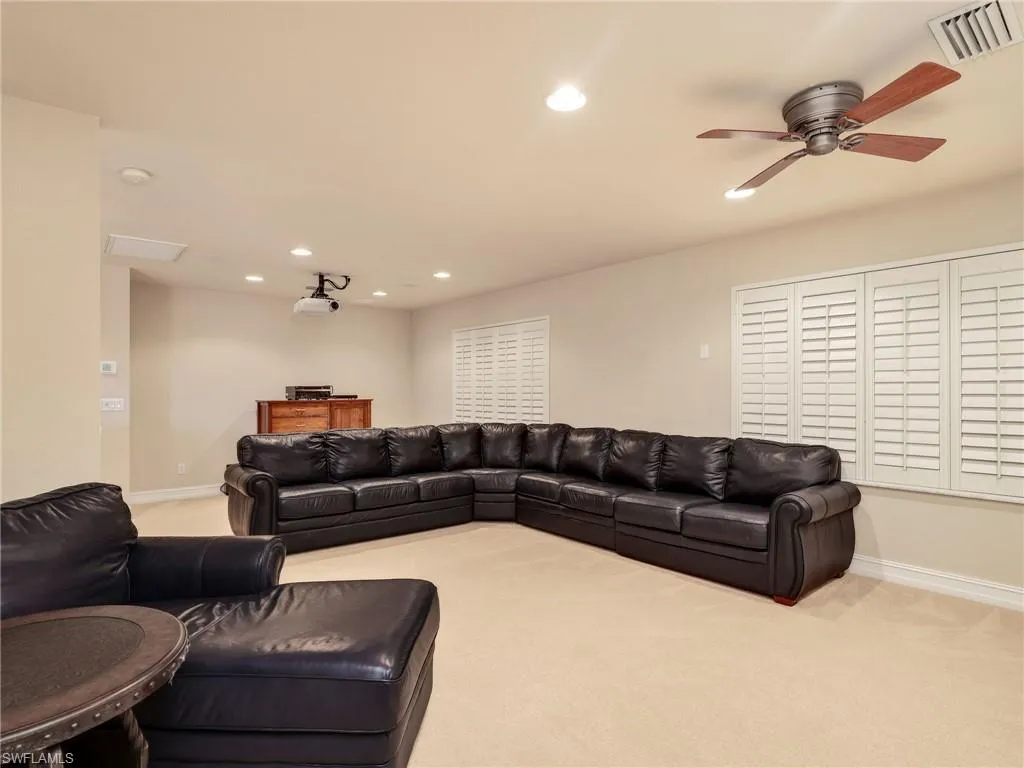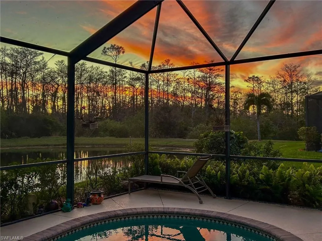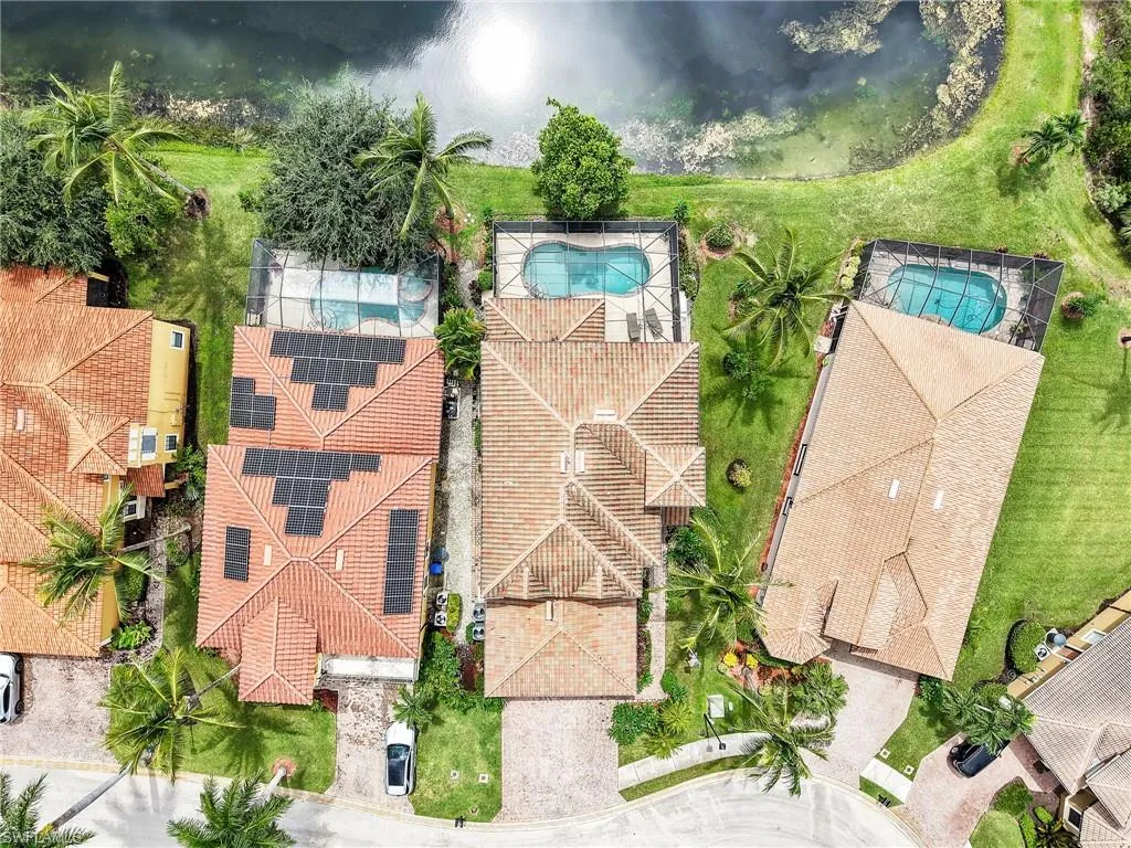 Welcome to 9162 River Otter Drive, a beautifully maintained two-story pool home in the highly sought-after gated community of Reflection Isles. Situated on a quiet cul-de-sac with a peaceful lake and preserve view, this residence offers a perfect blend of comfort, style, and modern upgrades, making it an exceptional opportunity for buyers seeking a move-in ready home. From the moment you arrive, the curb appeal is undeniable with lush landscaping, a paver driveway, and elegant double entry doors leading into a spacious foyer. Inside, the first floor is designed for both functionality and entertaining. The layout includes a formal living room, a separate dining room with tray ceiling, a guest bedroom, guest bathroom, and a spacious great room that flows seamlessly into the gourmet kitchen. The kitchen is equipped with granite countertops, an island, abundant counter space, double wall oven, electric cooktop, ample cabinetry, and upgraded lighting. Many windows throughout the home are enhanced with plantation shutters, adding charm and privacy. Tile floors run throughout the downstairs, while the upstairs features plush carpeting. 3 bedrooms and 2 bathrooms are located upstairs, including the impressive primary suite which offers a tray ceiling, large walk-in closet, and a spa-like bathroom with dual vanities, a soaking tub, and a separate glass-enclosed shower. The upstairs loft has been transformed into a fully functional media room, complete with a projector, screen, and Bose surround sound system, creating the ultimate space for movie nights and entertainment. Step outside to the screened lanai where the sparkling pool invites relaxation while overlooking the serene lake and preserve. This outdoor space is ideal for hosting gatherings or simply enjoying Florida’s year-round sunshine. Recent updates and upgrades further enhance the value of this home. The roof, soffits, and downspouts were replaced in 2023. Both air conditioning units are brand new—Unit 1 was installed in January 2024 and Unit 2 in January 2025. Additional highlights include fresh interior and exterior paint, newer water heater, whole home water filtration system, tinted windows, garage pull-down screen door, and security camera system for added peace of mind. To maximize energy efficiency, the attic has been upgraded with 10 inches of additional R-12 insulation. Living in Reflection Isles means enjoying a vibrant community surrounded by natural preserves. Residents have access to fantastic amenities including a clubhouse, resort-style pool and spa, fitness center, tennis and basketball courts, and a playground. Conveniently located in the Daniels Parkway corridor, you are close to shopping, dining, schools, RSW airport, and easy access to I-75.