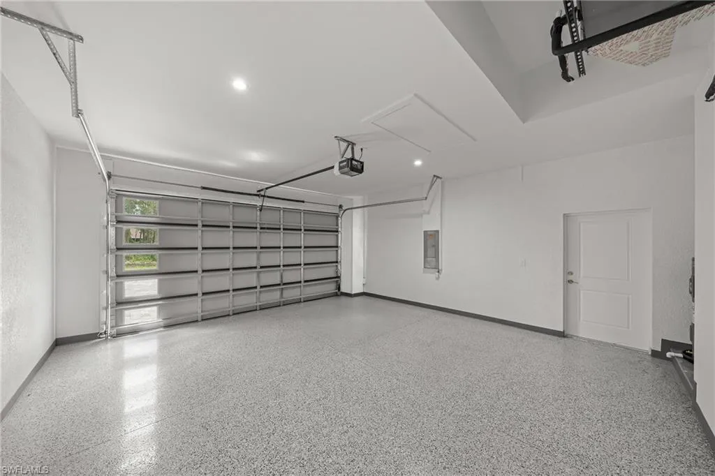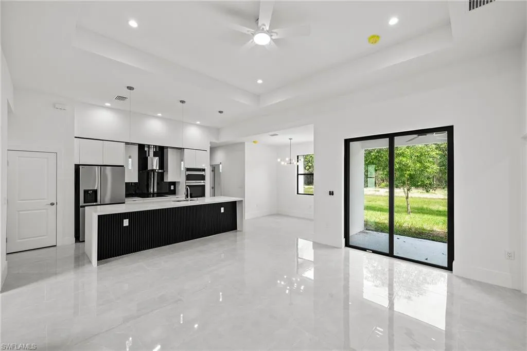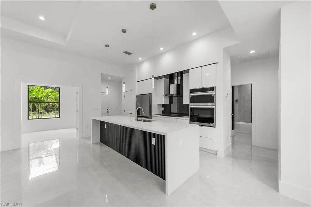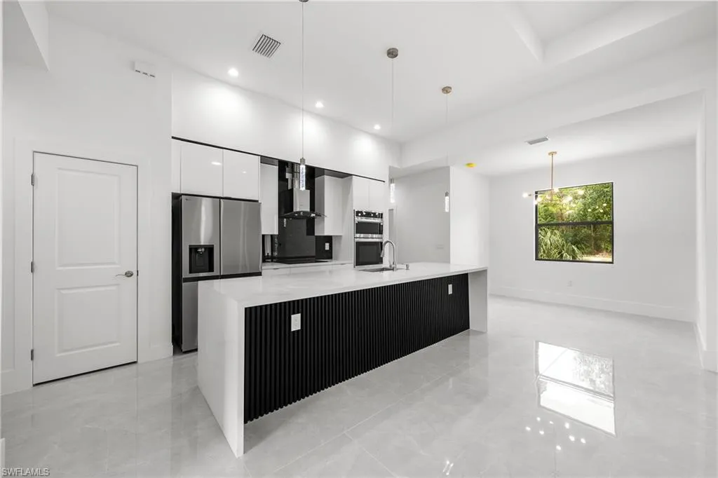 UNCOMPROMISING QUALITY MEETS UNPARALLELED CONVENIENCE! This newly built semi-custom home offers the perfect blend of modern elegance and everyday comfort in a highly desirable location. The double-door entry opens to a light-filled open floor plan with 10-foot ceilings, an 11-foot illuminated tray ceiling, and 24″ x 48″ porcelain tile floors, complemented by a versatile den for added functionality. The gourmet kitchen is a chef’s dream with high-end black stainless-steel appliances, a black stainless farm sink, solid wood cabinetry, quartz countertops and backsplash, and a custom coffee bar. The primary suite boasts two walk-in closets, an 11-foot illuminated tray ceiling, and a spa-inspired bathroom with a dual-sink floating vanity, stand-alone soaking tub, oversized walk-through shower with dual shower heads, and premium Moen fixtures, while guest bedrooms share a full bath with lanai access for a future pool. Indoor-outdoor living shines with a three-panel sliding glass door leading to a lanai. Additional highlights include Bahia sod, automatic sprinklers, paver driveway and entry, epoxy-finished garage and lanai floors, impact-resistant doors and windows, and a whole-house reverse osmosis system. Nestled in a tranquil, fast-growing neighborhood, this property offers upscale features in every corner—where luxury meets lifestyle.