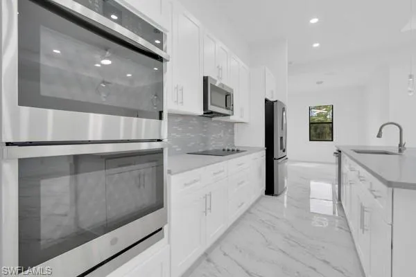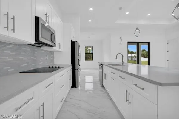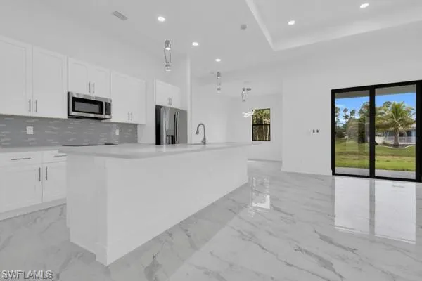 Brand-New Custom Construction Ready for Immediate Move-In! Welcome to this exquisite 2025 custom-built residence, thoughtfully designed as a luxurious residential masterpiece. this home offers both sophistication and functionality in a serene and spacious setting. Boasting an open-concept layout ideal for elegant yet comfortable living, this home features 3 spacious bedrooms, 2 modern bathrooms, and a dedicated office/den. The master suite is a true retreat, showcasing a tray ceiling, cozy sitting area, split vanities, a designer walk-in shower, and a generous walk-in closet. The heart of the home is the gourmet kitchen, equipped with quartz countertops, sleek Italian-style cabinetry, a large center island, and top-of-the-line smart stainless-steel appliances—perfect for entertaining or everyday living. Additional highlights include Stylish tile flooring throughout Covered lanai with outdoor summer kitchen Customized bathroom finishes , throughout Ample backyard space with room for a pool, Side access for back canal Don’t miss the opportunity to own this stunning new construction home that blends contemporary design with practical living on a prime piece of land on Buckingham area.