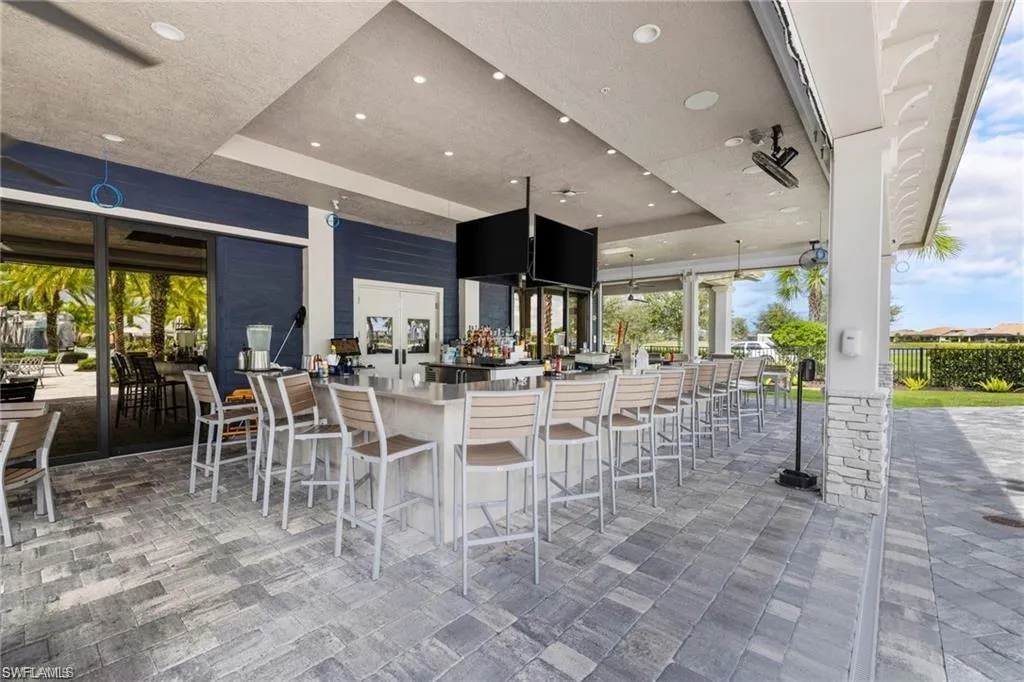 The Place at Corkscrew redefines resort-style living with unparalleled amenities, including a state-of-the-art fitness center, aerobics studio, spa services, kids’ club, smoothie bar, cafe/marketplace, Bourbon Bar, and Barefoot Bar & Grill. Outdoor amenities include a resort-style pool with a 100-foot waterslide, two rock waterfalls, beach entries, a splash park, spa, cabanas, fire pit, Har-Tru tennis courts, pickleball with an onsite tennis pro, bocce, beach volleyball, and a dog park.