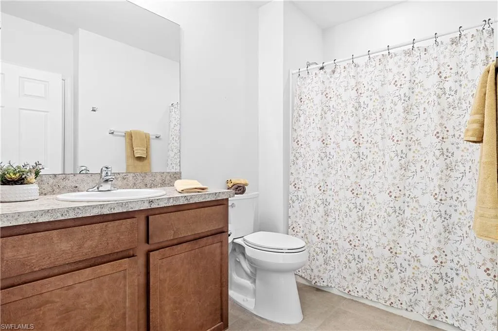 The private owner’s suite includes plush carpeting, an oversized walk-in closet, and a spa-inspired bath with double sinks and a walk-in shower. Two additional bedrooms provide the perfect space for guests, family, or a home office.