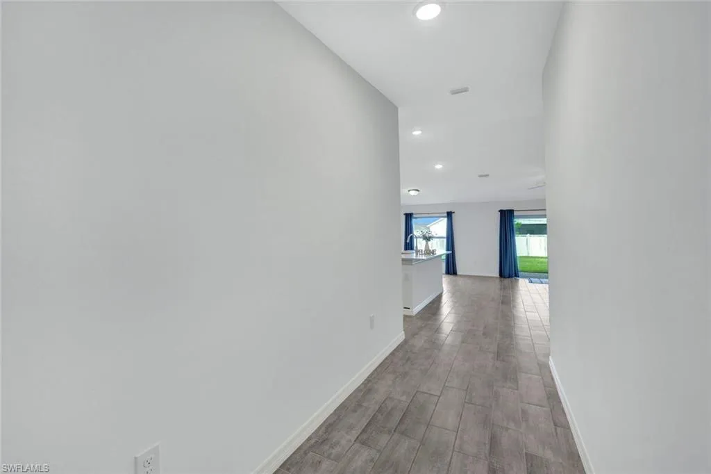 Lovely SW Cape Coral home for sale! Built in 2024! Enter this bright, open concept home through the spacious foyer. The great room has a vaulted ceiling & sliding doors to the screened lanai. The kitchen features vaulted ceiling, quartz countertops, white shaker cabinets, large island with counter space for stools, stainless steel appliances, spacious eating area with a window, plus a pantry. The primary bedroom is spacious & features an ensuite bathroom with a large walk-in shower, dual sinks, water closet, linen closet & huge walk-in closet. Across the home you’ll find 3 more bedrooms, a guest bathroom & linen closet. The laundry room is situated between the kitchen & garage with shelving & an extra storage closet with shelves. Enjoy the outdoors in the spacious, screened back lanai with pavers or the large back yard. There is an attached two car garage & paver driveway. This home is better than new as the owners have added custom window shades & curtains, gutters & downspouts, screened the front & back lanais, added light or fan fixtures & more! On city water with all assessments paid! Don’t miss your opportunity to see and purchase this home!