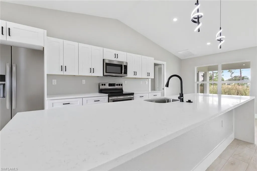 This stunning new construction four-bedroom, three-bathroom home brings modern style and timeless comfort to a peaceful freshwater canal setting in Northeast Cape Coral. With thoughtful details, striking finishes, and the advantage of Flood Zone X (no flood insurance required), this home is built for both beauty and peace of mind.