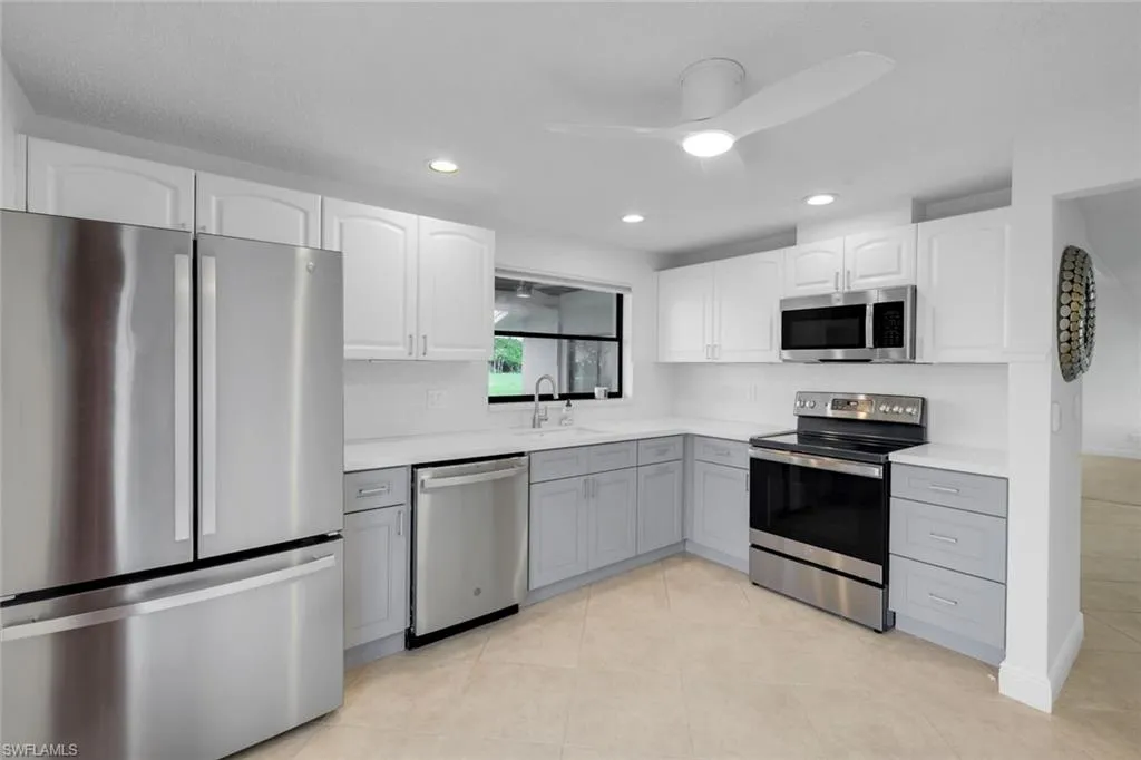 Lovely 3 Three Bedroom, 2 Full Bath, with an Oversized 2 Car Garage., HUGE Screened Lanai with Incredible Water Golf Course View! New HVAC, HW Heater, Flooring, Cabinetry, SS Appliances, Quartz, Custom Closets, the List goes on! Large Lot with Lake on 2 Sides, Panoramic View of The Newly Renovated Bear Championship Golf Course. Electric & Concrete Pad Ready for a SPA. HOA takes care of the Lawn Maintenance/Irrigation, and Coach lights, Also Includes the Master Association Fee. Pets of Any Weight Permitted- No Aggressive Breeds. Each Home sits on Its Own Deeded Lot. Peaceful, Private Circle of 17 Villa Style Homes. The Forest Has 2 Gated Entries. Membership in the Forest Golf & Tennis Country Club is Optional. Several Styles offered. The Master Association fee is included in the quarterly fee. Please note: some Amenities Listed Require Membership in the Forest Country Club. Membership Incentives Now Through 12/21/25. Beautiful Wildlife Just Out the Windows, Egrets, Otters, Eagles. This Community has Sidewalks and Street Lighting for Long Walks in the Sunshine! Children’s Park. RSW Airport just 15 Min, Schools Nearby- Shopping Everywhere, Come Live & Play in The Forest!