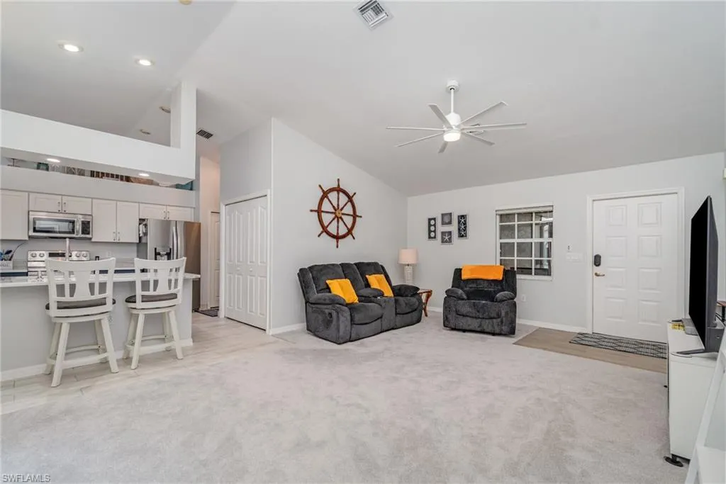 Active 55+ Golf Lifestyle in North Fort Myers! Love golf and Florida sunshine? Discover Sabal Springs Golf & Racquet Club, a vibrant 55+ community with a meticulously maintained Gordon Lewis–designed golf course right outside your door. This beautifully remodeled turnkey 2-bedroom, 2-bath home is move-in ready. Enjoy tile floors & granite, in the kitchen and baths, plush new carpet throughout the living areas, and a designer kitchen featuring two-tone shaker cabinets—crisp white uppers and striking navy lowers. Paid-in-full solar panels keep your electric bill at an incredible $23 per month. Sabal Springs is perfectly located minutes from beaches, shopping, dining, and regional airports, yet offers peaceful surroundings and endless recreation. Meet friends at the clubhouse, cool off in the heated pool, or enjoy tennis, shuffleboard, and so much more. Whether you’re an avid golfer or simply love an active lifestyle, this home offers everything you need to relax and play in sunny Southwest Florida.