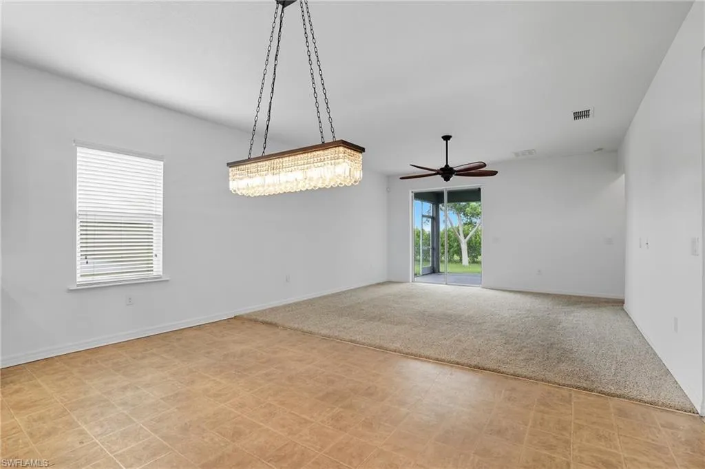 Built in 2017 by Maronda Homes, this beautifully maintained 3 bedroom + den, 2 bathroom and a 3 car garage home offers one of the most desirable floorplans in Cape Coral—all for under $400,000! A NEW ROOF (2025) + NEW AC (2025) providing you peace of mind for years to come. As you enter, you’ll find a bright open den to the left, perfect for a home office, playroom, or flex space. The private guest wing includes two bedrooms and its own bonus area between them—ideal for a media room, study, or even conversion into additional bedrooms, creating the potential for a true 5-bedroom layout. The main living space is an entertainer’s dream with an open-concept kitchen, dining, and living room that flows seamlessly together. The kitchen offers abundant counter space & open cabinetry and a welcoming design for everyday living and gatherings. Key Features: Open-concept kitchen, dining, & living areas, Private guest wing with bonus room, Brand-new roof in 2025, Built by Maronda Homes in 2017, FHA & VA approved. This home newer construction, lots of square footage (just shy of 2000 sqft), flexible living spaces, NOT IN A FLOOD ZONE and excellent value. Priced to attract motivated buyers—schedule your private showing today!