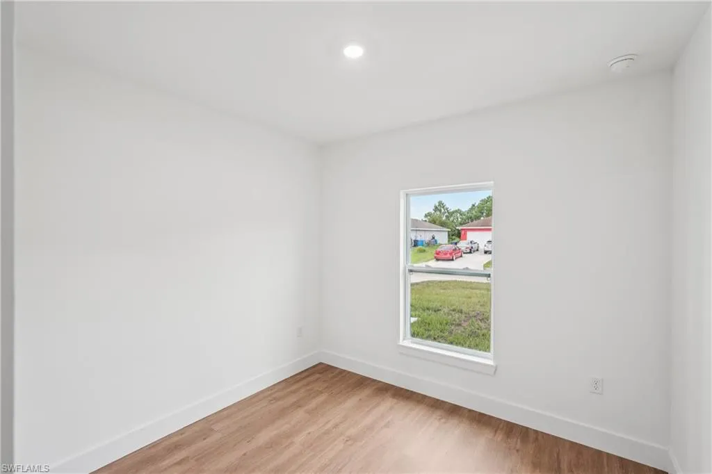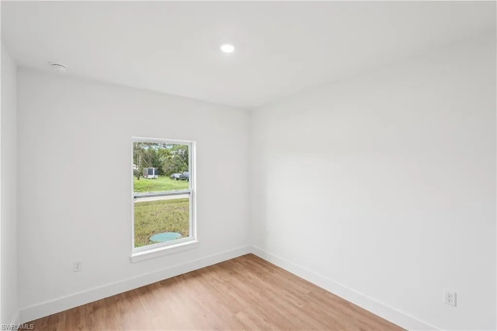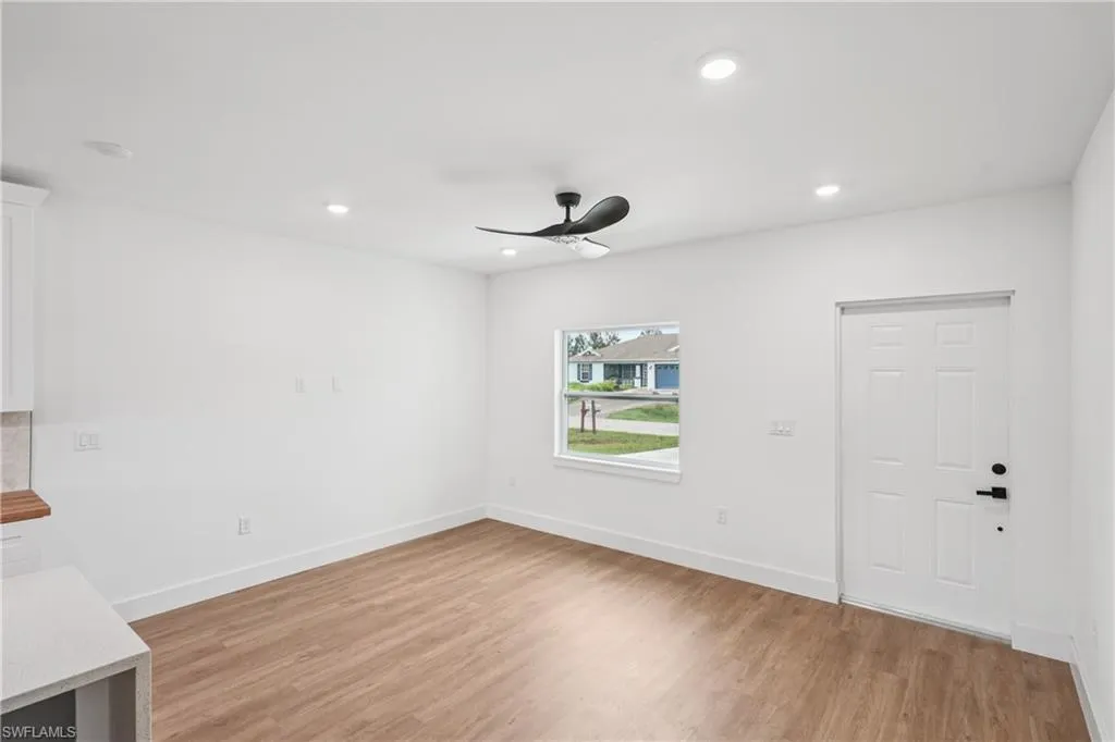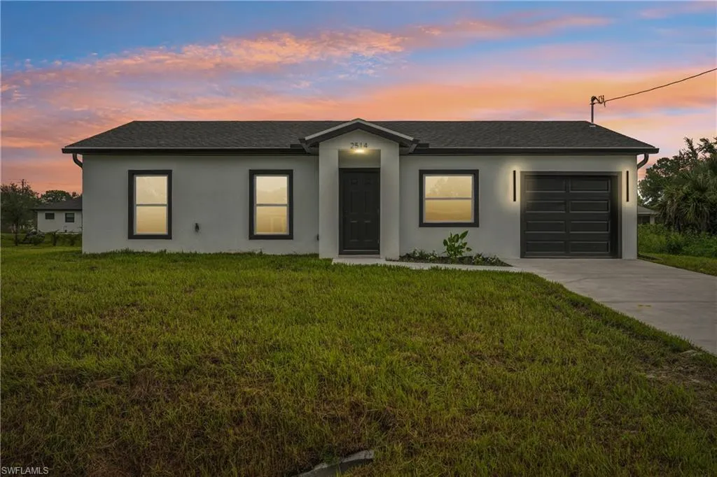Welcome to this cozy yet modern 3 bedroom 2 bath home offering 1,101 square feet of thoughtfully designed living space. The kitchen includes Samsung appliances, abundant cabinet storage, and a combination of butcher block treated countertops and quartz that blend warmth and luxury. Bathrooms are stylish and inviting. The entire home features durable waterproof and fire resistant luxury vinyl flooring. Washer and dryer are included. Additional highlights include a one car garage with exterior access, a two car driveway, and a spacious backyard with an automatic sprinkler system that keeps the lawn fresh year round. Built with solid concrete block construction for lasting quality this property is located less than 15 minutes from I 75 and The Forum with easy access to SR 82 for shopping dining and commuting routes. This home is also close to Southwest Florida International Airport. A move in ready home that balances comfort style and convenience.