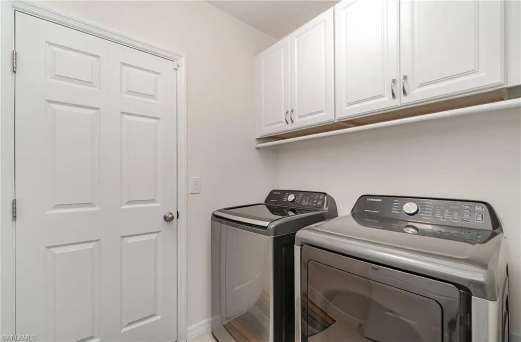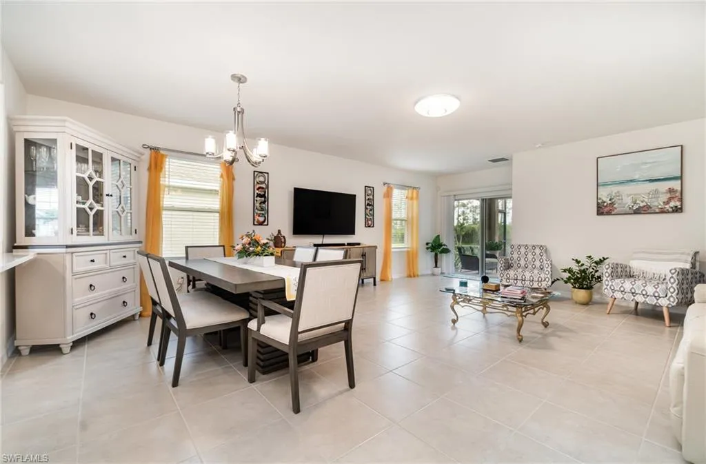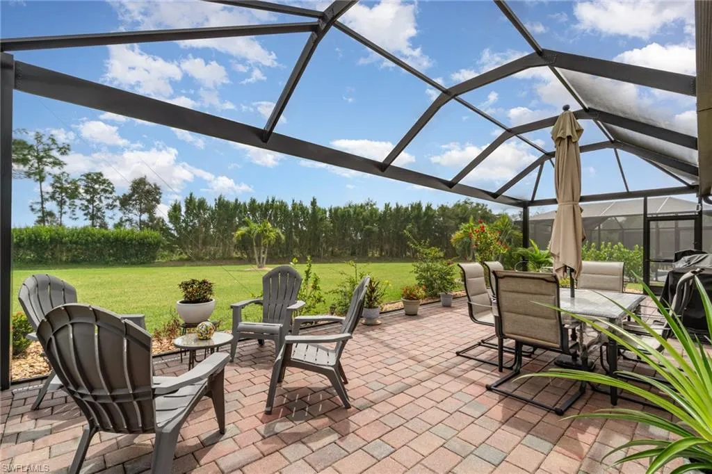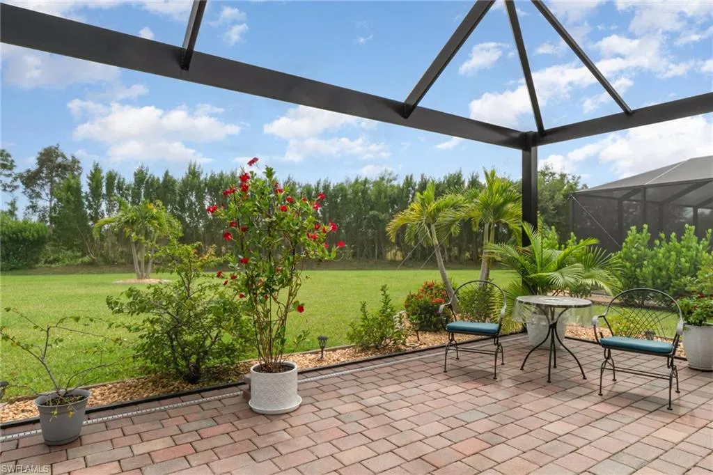Looking for a home that has it ALL? This upgraded home in Magnolia Landing is your ticket to Florida living — and its ready right now! From the moment you arrive, you’ll be greeted by eye-catching curb appeal with concrete curbing, stone, healthy plants and guttering. Step inside and fall in love with the open, light-filled layout featuring upgraded lights and fans, and stylish window coverings. The kitchen is a total showstopper with a ceramic tile backsplash, pull-out shelving, and a brand-new LG stove — perfect for cooking, hosting, and making memories. Your primary suite is a retreat of its own with a custom glass shower door, while the laundry room adds convenience with built-in cabinets and a newer Samsung washer and dryer – ALL included. And just wait until you see the backyard! The extended lanai with multi-color lighting sets the mood for evening gatherings, while the generous green space offers room for pets, play, or even a future pool. Bonus features like epoxy garage floors, pull-down attic stairs, and a retractable front screen door make this home as practical as it is beautiful. Location matters and this one delivers! You’re just a short distance from the amenity center where you can enjoy two resort-style pools, a fitness center, games and activities, and a community buzzing with energy. Golf lovers will appreciate the optional golf membership (with no waitlist) and Pay-Per-Play access. Plus, The Grill is just minutes away providing the perfect spot to grab a bite or sip a cocktail with friends without ever leaving the neighborhood. Move-in ready, packed with upgrades, and in one of Southwest Florida’s hottest communities!