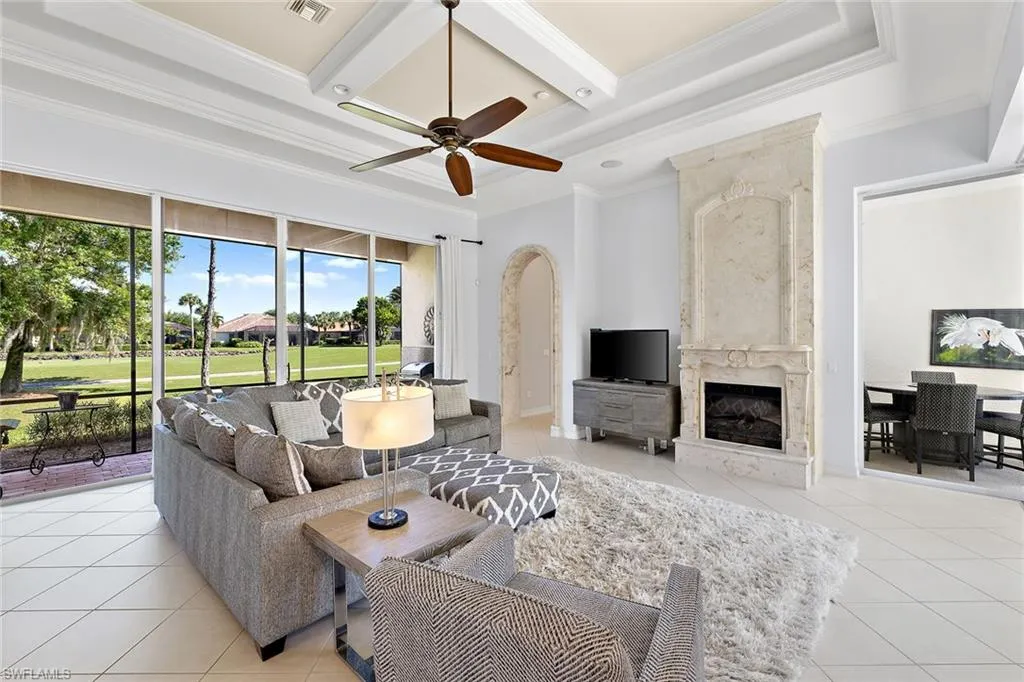 Welcome to your dream residence in the sought-after, double-gated Majors at Lely Resort! This exceptional Pinehurst model estate is a meticulously maintained, turnkey-furnished home, offering four bedrooms plus a den, and three-and-a-half baths. Designed for those who value luxury, comfort, and ease of living, this home exudes elegance and charm from the moment you step through the custom double-entry front doors. Inside, the home dazzles with its elegant architectural details, including crown molding, a fireplace surrounded by custom natural stone setting the tone for quality throughout. The open great room and courtyard layout is ideal for relaxed living and grand entertaining. The main residence offers three spacious bedrooms and two-and-a-half baths, complemented by a private one-bedroom, one-bath casita for guests or as an in-law suite. All living spaces seamlessly connect to a spectacular central courtyard, with a heated pool, integrated waterfall spa, and sun-soaked deck, offering the ultimate in indoor-outdoor living. The chef’s kitchen, designed with entertaining in mind, features a large walk-in pantry, premium appliances, and ample countertop space. The custom-built home office/den adds functionality and sophistication. The private courtyard outdoor living area is complemented by a rear covered lanai with breathtaking southern golf course and lake views, making this the ideal setting for day and night enjoyment. The home is complete with a spacious three-car garage and topped with a new tile roof. As a resident, you’ll enjoy exclusive immediate access to the Players Club and Spa, where amenities include a state-of-the-art fitness center, restaurant, tiki bar and grill, billiards room, luxurious spa, resort-style pools, and an elite tennis and pickleball facility. Golf enthusiasts will revel in access to Lely Resort’s three championship 18-hole courses. Don’t miss this rare opportunity to own an exquisite estate where luxury and convenience meet. Experience the lifestyle you’ve always dreamed of. The property is a potential source of rental income, and history is available.