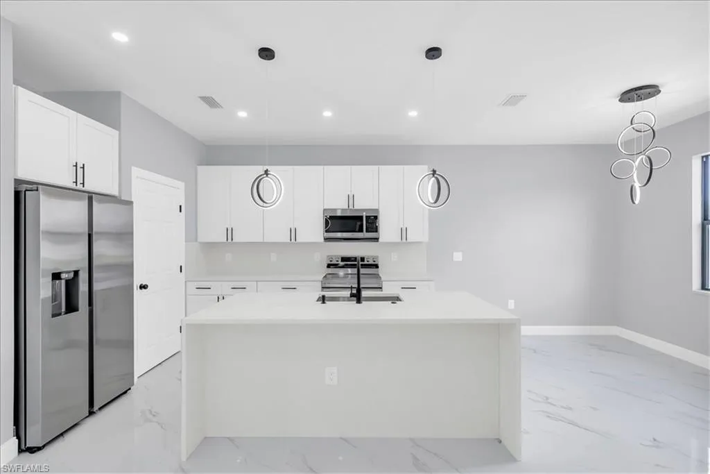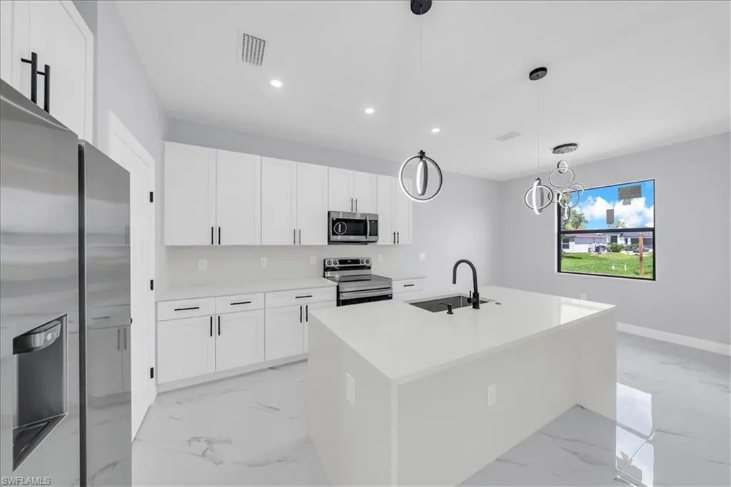 Brand-new construction in the heart of Lehigh Acres! This stunning 3-bedroom, 2-bathroom home with a 2-car garage features modern finishes throughout, including porcelain tile flooring, hurricane impact windows and doors, and an open-concept layout designed for today’s lifestyle. The kitchen offers granite countertops, stainless steel appliances, and a breakfast bar, while the spacious primary suite includes dual sinks and a walk-in shower. Enjoy the Florida lifestyle on your covered lanai and private backyard. Conveniently located near Southwest Florida International Airport (RSW), Daniels Parkway, I-75, shopping, dining, and schools, providing easy access to all of Southwest Florida. Perfect as a primary residence or investment property!