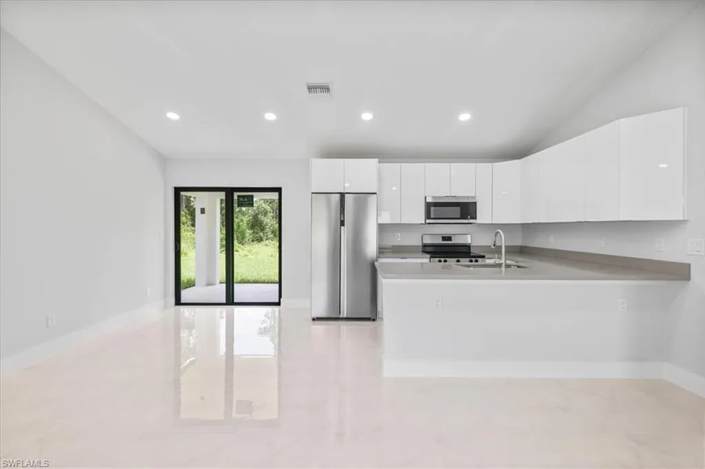 Seller is motivated and ready to make a deal! 10 Year Structural Warranty and 3% Seller’s Credit towards Buyer’s closing costs with full price offer. Welcome to your newly constructed home, now complete and move-in ready. Not located in a flood zone. This exceptional residence offers refined living space with premium finishes and modern elegance. A spacious 3-bedroom plus Den, 2-bathroom layout, 1-car garage and washer and dryer installed in separate laundry room. Volume ceiling. Hurricane-impact windows and doors create an open, airy atmosphere, while 24×24 porcelain tiles and sleek high-profile baseboards add a sense of sophistication throughout. Wonderful kitchen with custom cabinetry, quartz countertops, and a full suite of brand-new stainless-steel appliances deliver both beauty and functionality. Bathrooms featuring matching quartz with high-end fixtures, including glass shower doors. Surrounded by new homes in this wonderful community. Virtual staging and 3D walkthrough available, shown on an identical model home for easy viewing. Easy to show, easy to sell! This home is sure to impress — don’t miss your chance!