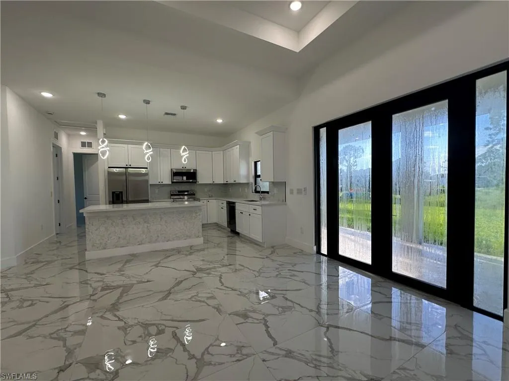 Amazing location!!! Brand NEW CONSTRUCTION. This 4 bedrooms, full bathrooms and 2 car garage, 1701sq Ft living area. Spacious floor plan with tray ceiling. Tile floors throughout, 9ft 4inch ceiling, quartz counter tops in kitchen and baths, impact windows and doors, double door entry, kitchen is open with plenty of wood cabinets + snack bar which open to the living ( stainless steel appliance package), electronic car garage opener,. Master suite features walk-in closet. Master bath has his/hers sinks with separate walking shower, laundry room, large lanai, near main roads Lee Blvd, Sunshine Blvd, SR 82, Daniels Pkwy, I-75. Southwest Florida International Airport, Gas Stations. 1 YEAR WARRANTY.