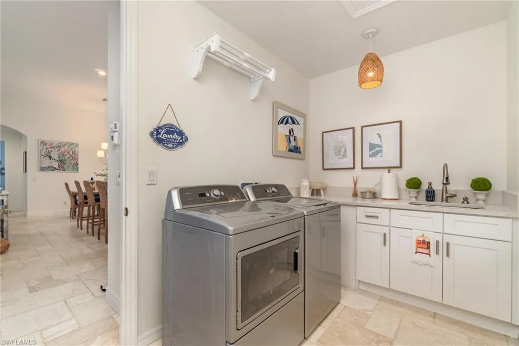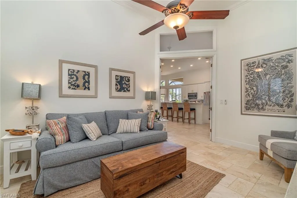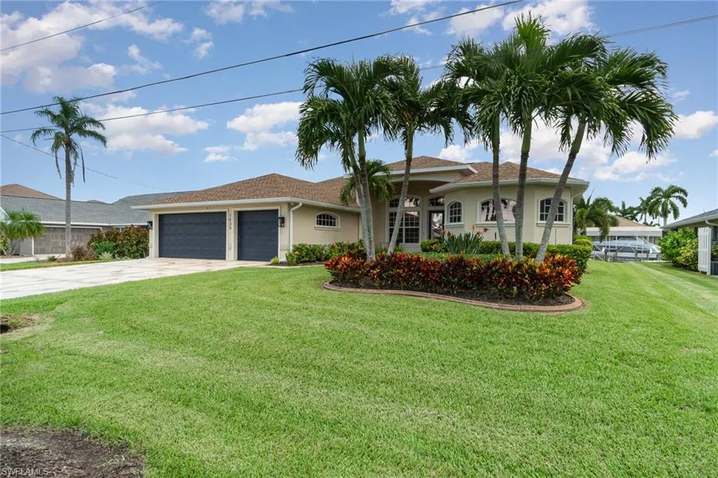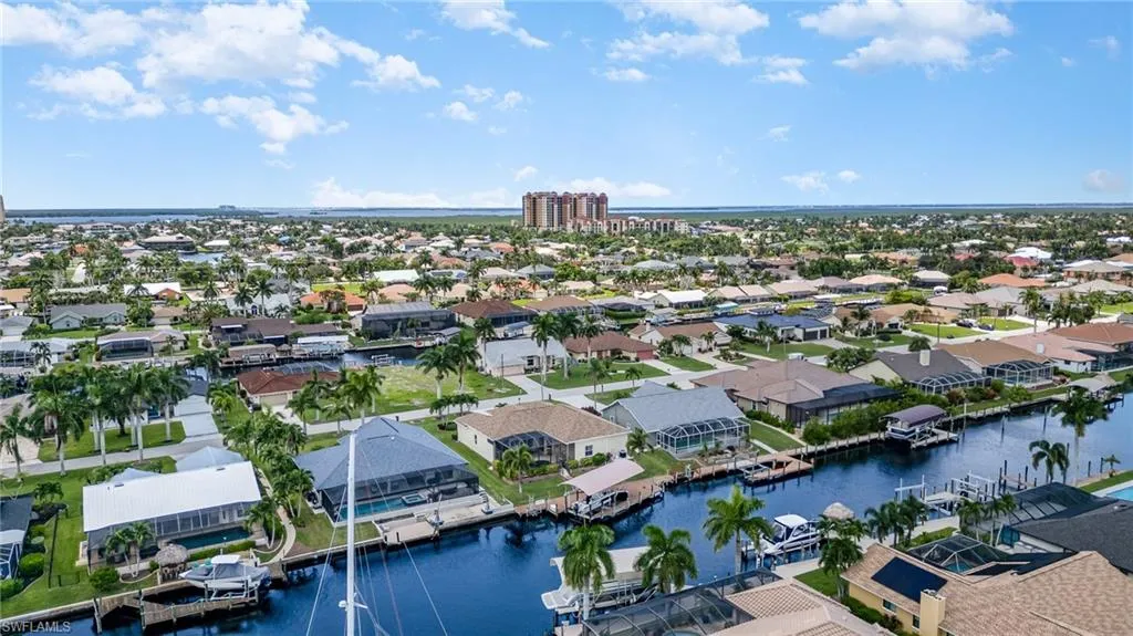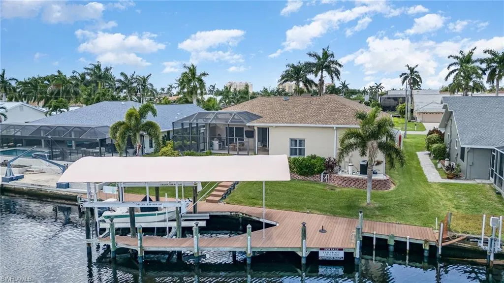 Calling All Boaters! This is the waterfront lifestyle you’ve been waiting for — DIRECT SAILBOAT ACCESS with a remote-controlled 24,000lb boat lift, a separate kayak lift, and a spacious wraparound dock featuring low-maintenance composite decking and a boat canopy to protect your investment. This beautifully updated 3-bedroom + den, 2-bath home boasts over 2,500 sq ft of living space in one of Cape Coral’s most sought-after neighborhoods — just blocks from Cape Harbour. Step inside to discover an open-concept design with a neutral coastal color palette, soaring 12+ ft ceilings, and elegant travertine flooring in the main areas (with plush carpet in the bedrooms). The completely remodeled chef’s kitchen features a gas stove, stainless steel appliances, quartz countertops, a built-in ice maker, and a wine refrigerator — perfect for entertaining. Additional interior upgrades include: Impact-resistant windows and doors, Lighted coffered ceilings, Crown molding throughout, Remodeled bathrooms and laundry room, Fresh interior paint, New roof and A/C system. The primary suite is expansive, with double walk-in closets, private lanai access, and a luxuriously updated en-suite bathroom featuring dual vanities, a walk-through shower, and a freestanding tub with custom tile accent wall. Step outside to your private oasis: a screened-in lanai with a sparkling pool and water feature, outdoor kitchen with a brand-new grill and refrigerator, and plenty of room to relax or entertain — making it the perfect extension of your living space. The home sits on a beautifully landscaped lot with mature tropical landscaping, and includes an oversized 3-car garage with epoxy flooring. Best of all, this home experienced NO flooding from Ian, Debbie, or Milton. Start living your best Florida lifestyle today — call now to schedule your private tour of this incredible piece of paradise!