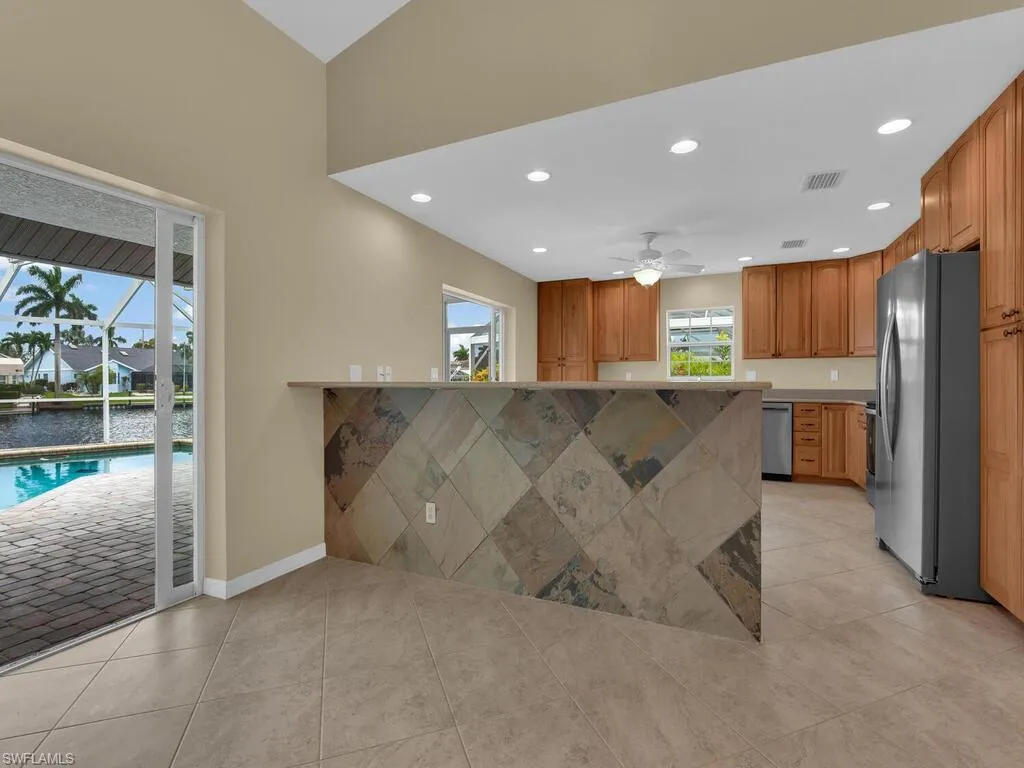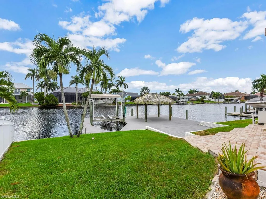 Explore this Beautiful, Gulf Access, Pool Home located in SE Cape’s Cornwallis Neigborhood. This Stunning 4 Bedroom, 3 Bath Waterfront Oasis is just mins from the River & offers Fantastic Boating Access! Boasting over 2880+ Sq Ft of Living Space, this is the Perfect Home for Large Families and Visiting Guest. Soaring Ceilings greet you upon entering the home, there’s a Spacious Living Room with Formal Dining Area. The Smart Kitchen Design offers a Prepping Island, SS Appliances, Ample Cabinet Space & Solid Surface Counter-Tops. Impact Sliders open to the Covered Lanai & Pool Area from most every room! Just off the Living Room is a Large Family Room that can serve Multiple Uses. The Primary Suite also offers access to the outdoor space while still providing privacy from the rest of the home. 3 additional Guest Bedrooms & 2 Full Baths Complete the Space. The Screened-In Pool Area is surrounded by Brick Pavers, providing ample Covered Space for Outdoor Dining & Entertaining. Boaters will Love the Enourmous Dock with Captains Walk, Boat Lift & Tiki Hut! Only Mins to the River, No Bridges or other Restrictions. Other Notable Features worth mentioning include New AC 2020′, Durable Metal Roof, Brick Paver Driveway, 3-Car Garage, Fresh Exterior/Interior Paint, Impact Doors & Windows, NO PAST FLOODING, & Transferable Flood Policy!! Don’t wait to see this home, it’s priced to Sell Fast, so call your Agent Today!
