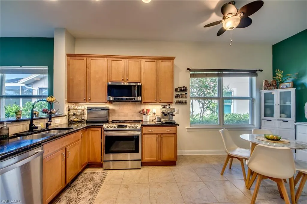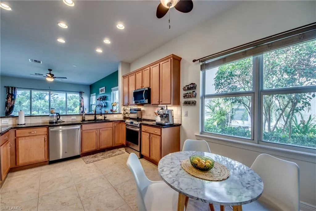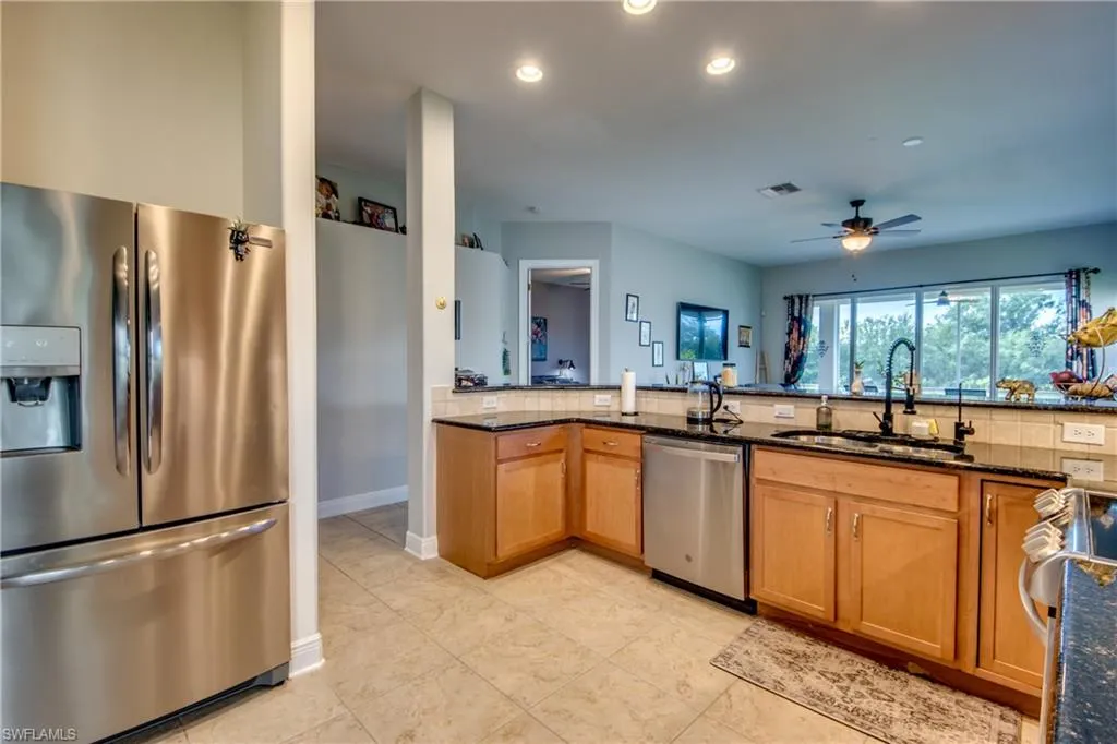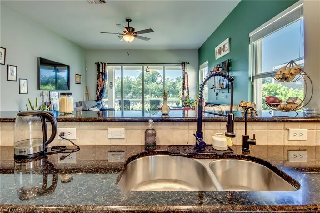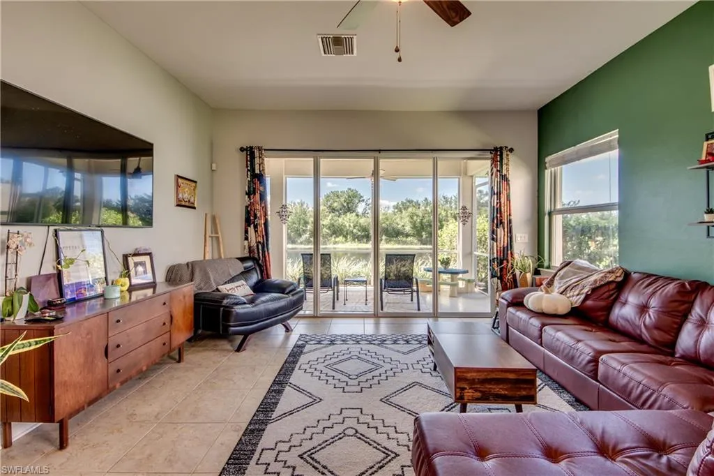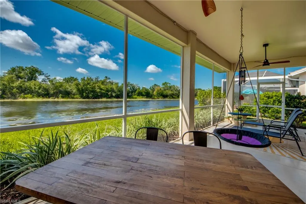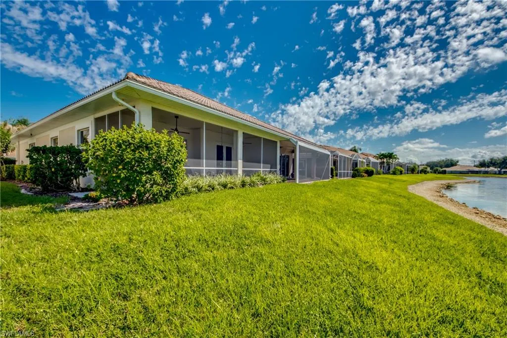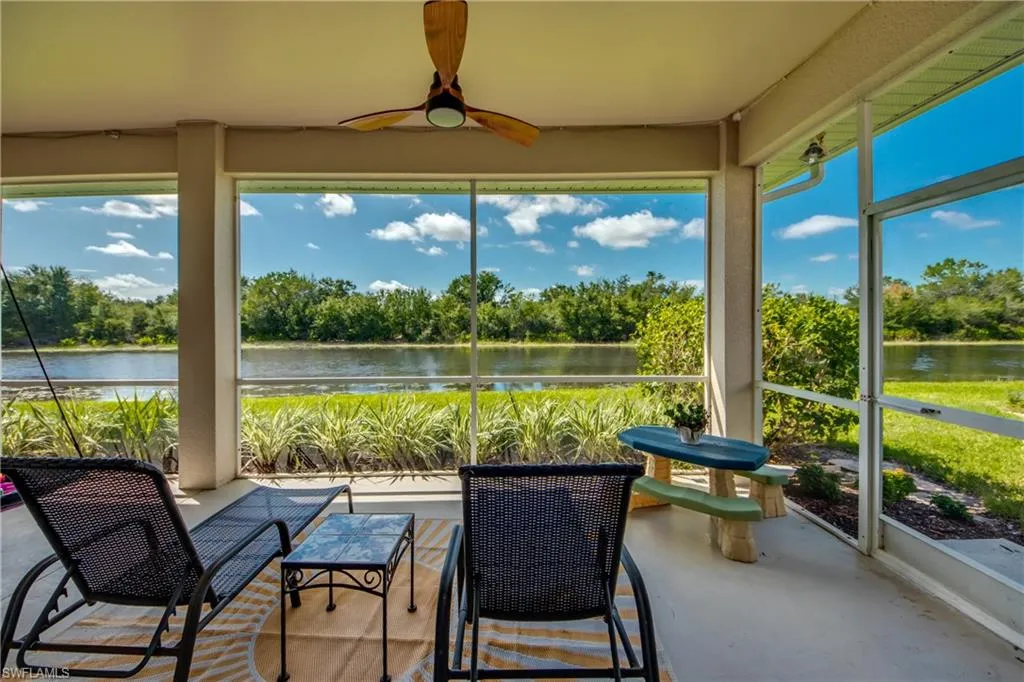 This hidden gem is one of the largest units in Devonshire Lakes. This 3/2 is spacious and bright with amazing 180 degree lake and preserve views which exude comfort and relaxation. This home has impact resistant windows and doors, stainless steel appliances and granite counter tops. This roomy 1618 sq ft unit with extended lanai was owner designed and built in 2008. The lakefront views of deer, otter, and water fowl from the great room and the master bedroom are spectacular. The master is not only spacious but also has an unexpectantly enormous closet. The heated community pool is just a few doors away. The 2008 construction means many years remaining on the tile roof plus a new water heater 2025. No flood insurance needed in Gateway.