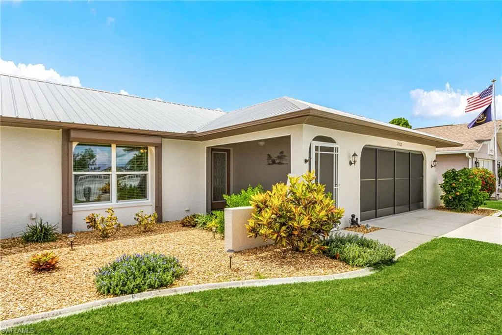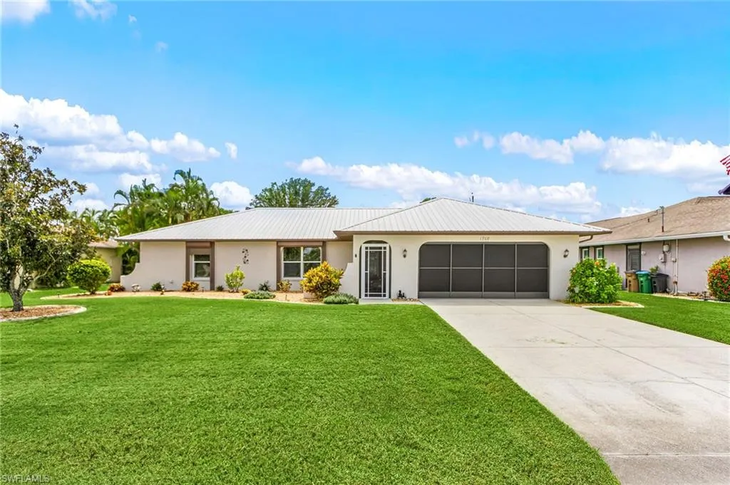 Pride of ownership shines throughout this rare SE Cape Coral home! immaculate inside and out, with every detail carefully maintained. Built in 2001, this residence offers peace of mind with a 2018 metal roof, accordion storm shutters, city water & sewer in and paid and no flood insurance required, (a huge savings for the new owner).