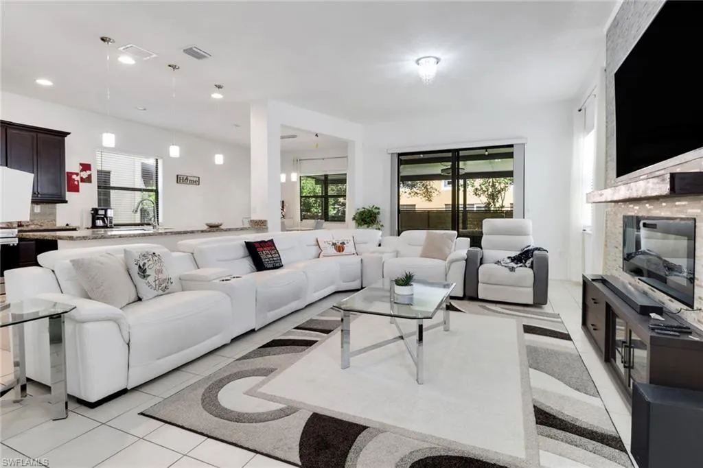 Welcome to Coquina Maple Ridge at Ave Maria – blending small-town charm with resort-style living. With low HOA, residents enjoy exclusive access to the Maple Ridge Clubhouse, offering a resort-style pool, fitness center, pickleball and tennis courts, billiards, dog park, and year-round community events. Ave Maria itself is a vibrant town with restaurants, shops, parks, top-rated schools, and the iconic town center – all just minutes from your doorstep. Inside, you’ll love the open-concept main living area, soaring ceilings, and a custom stone accent wall with electric fireplace. The kitchen features granite countertops, dark wood cabinetry, stainless steel appliances, and a large center island. Outdoor living shines with a spacious screened-in lanai and private seating area surrounded by lush greenery – ideal for grilling, entertaining, or simply relaxing.With an easy commute to Arthrex and Naples this home is a perfect fit for professionals relocating for career opportunities or those moving from larger cities who want more space, value, and a welcoming community lifestyle without sacrificing convenience. Whether you’re seeking a year-round residence, family home, or seasonal retreat, this property is truly a must-see.