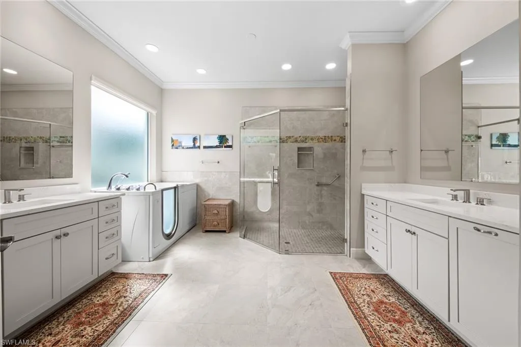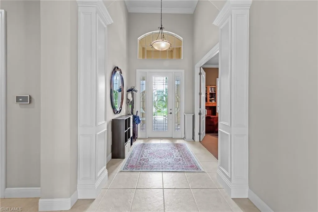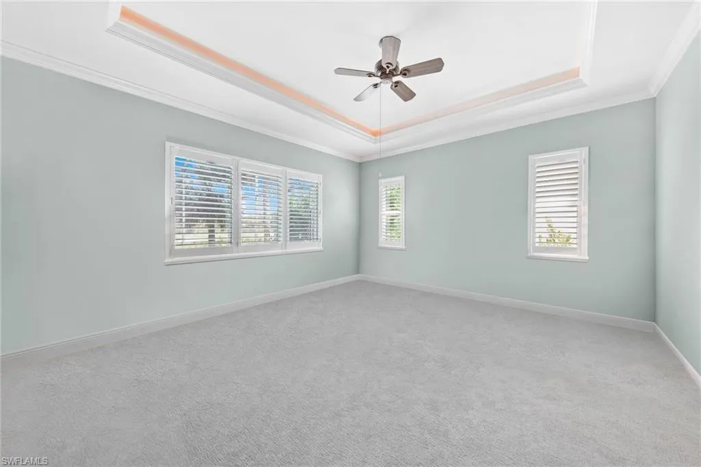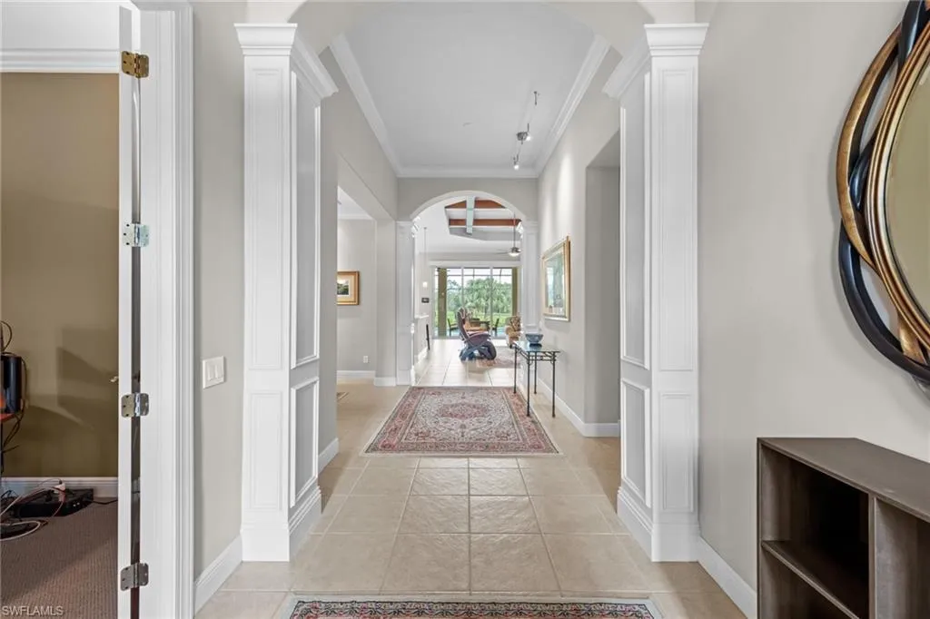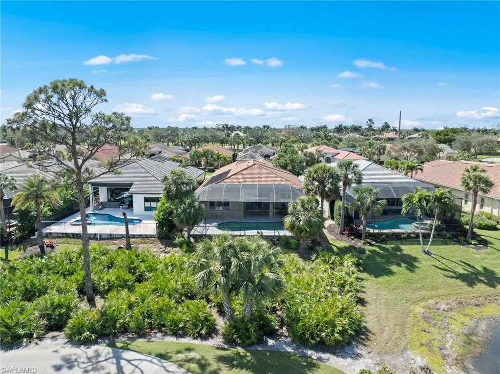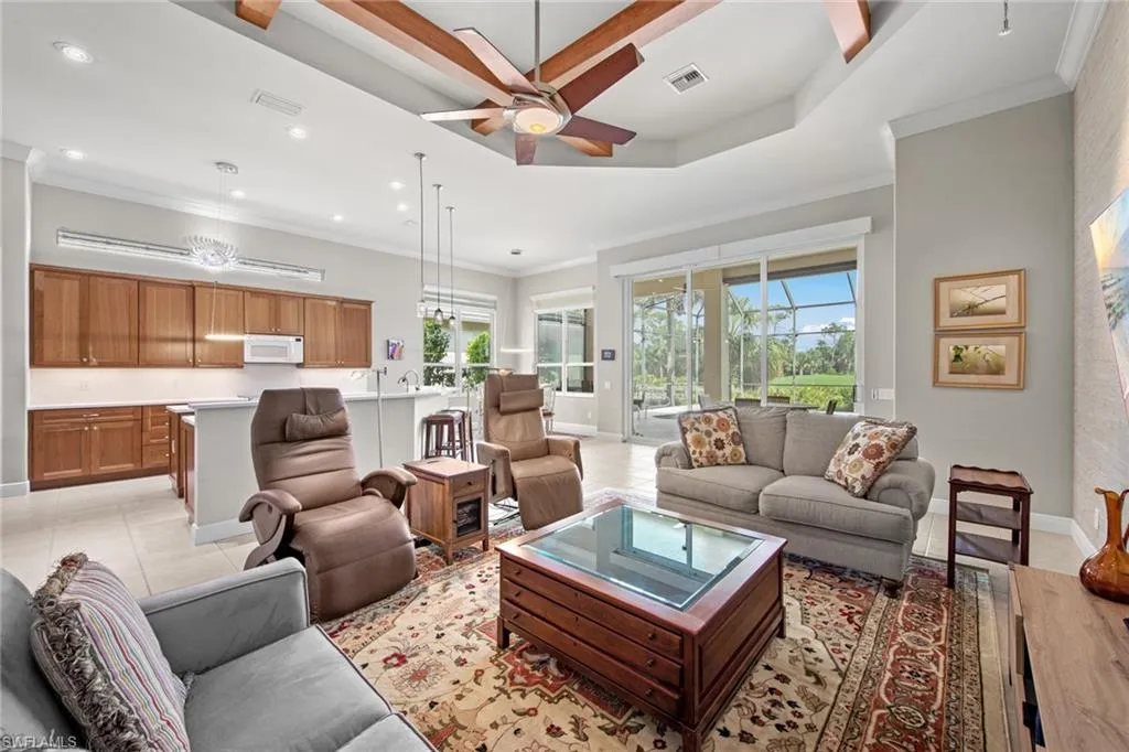 Welcome to this exceptional Porta Rosa villa, nestled within Parkside’s intimate enclave of just 27 residences. With the community’s largest floorplan, this home offers panoramic views of the 11th and 12th fairways framed by two sparkling lakes—an ideal backdrop for everyday living and entertaining. Designed for both comfort and sophistication, the residence features impact-resistant windows, a new TRANE HVAC with smart climate control, and a jet-flow pool system that brings the luxury of aquatic fitness right to your backyard. The spacious owner’s suite is a private sanctuary with its spa-inspired bath and therapeutic hydrotherapy tub, perfect for unwinding after an active day. Elegant touches are found throughout, including crown molding, tray ceilings, solid-core doors, and custom shutters. A versatile flex room offers endless possibilities as a home office, fitness studio, or creative retreat. Outdoors, the oversized lanai invites relaxation and customization—ideal for an infrared sauna, outdoor kitchen, or simply soaking in the tranquil views. Thoughtfully landscaped with Florida-friendly plantings, the property blends beauty and low-maintenance living. Just a short stroll away, enjoy pickleball, tennis, bocce, fishing, and kayaking along Mullock Creek. Optional membership opportunities at Shadow Wood Country Club and the private Beach Club further enhance the lifestyle. Perfectly located minutes from Coconut Point Mall, Gulf Coast Town Center, and RSW International Airport, this home is more than a residence—it’s a lifestyle destination. Schedule your private tour today and step into the best of Southwest Florida living.