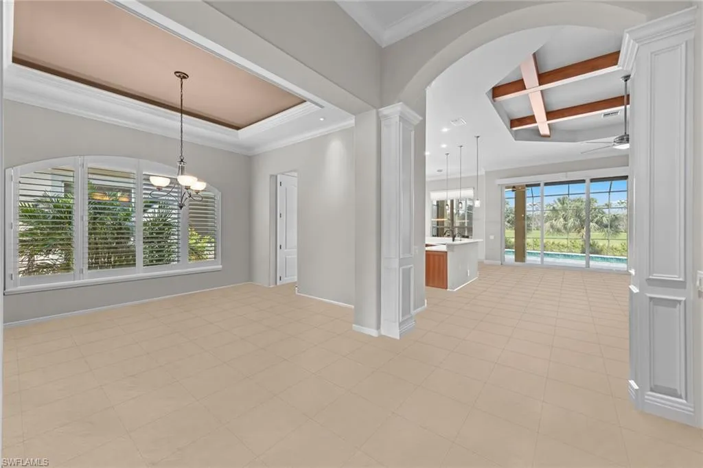 Live where luxury meets lifestyle in this rare Porta Rosa villa—Parkside’s largest and most coveted floorplan, nestled in an exclusive enclave of just 27 homes. Pre-listing inspection completed and a home warranty will be provided for total peace of mind and buyer confidence! With sweeping views of two shimmering lakes and the 11th and 12th fairways, this residence offers a serene, resort-style backdrop for everyday living. Step inside to discover a home designed for comfort, wellness, and elegance: Impact-resistant windows and a new TRANE HVAC system with smart climate control ensure energy efficiency, jet-flow pool system transforms your lanai into a private aquatic fitness retreat and, an owner’s suite is a sanctuary of calm, featuring a spa-inspired bath and therapeutic hydrotherapy tub. Thoughtful upgrades include crown molding, tray ceilings, solid-core doors, and custom shutters throughout. A versatile flex room adapts to your lifestyle—perfect as a home office, yoga studio, or creative space. Outdoors, the oversized lanai invites endless possibilities: install an infrared sauna, design an outdoor kitchen, or simply relax and take in the tranquil views. The landscaping is Florida-friendly and low-maintenance, blending beauty with ease. Just steps away, enjoy pickleball, tennis, bocce, fishing, and kayaking along Mullock Creek. Optional memberships at Shadow Wood Country Club and the private Beach Club elevate your experience even further. Located minutes from Coconut Point Mall, Gulf Coast Town Center, and RSW International Airport, this home offers unmatched convenience and connection. Don’t just tour a home—step into a lifestyle. Experience the best of Southwest Florida living.