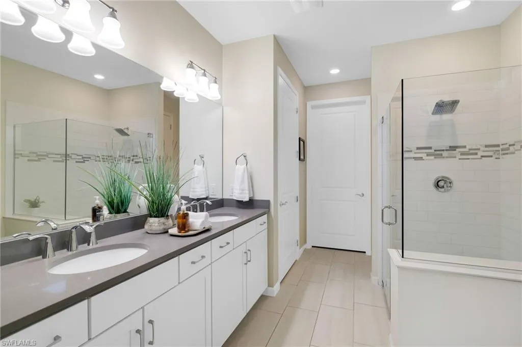 Experience luxury living in this bright and modern Summerwood home by Pulte, located in the prestigious RESORT-STYLE COMMUNITY of THE PLACE AT CORKSCREW. Offering 2,000 square feet of thoughtfully designed living space, this single-family home features 3 bedrooms, 2 bathrooms, a versatile den, and a CUSTOM SALTWATER POOL AND SPA—perfectly blending comfort, elegance, and functionality. The kitchen stands out with 42-inch white upper cabinets, an OVERSIZED ISLAND with QUARTZ COUNTERTOPS and a single-basin sink, a stylish TILED BACKSPLASH, and a WALK-IN PANTRY. The private primary suite is a serene retreat with a spacious bedroom, WALK-IN CLOSET, and a beautifully appointed bathroom featuring a dual sink comfort-height vanity, separate water closet, modern tile finishes, and a FRAMELESS GLASS WALK-IN SHOWER. Two additional bedrooms and a den, situated toward the front of the home, offer ample flexibility for family and guests. A SEPARATE LAUNDRY ROOM WITH BUILT-IN STORAGE and a second refrigerator enhances convenience. Other features throughout the home include ceramic tile flooring, crown molding, window treatments, upgraded lighting and fans, 8-FT DOORS, and a neutral color palette that creates a refined and welcoming atmosphere. This home also includes a Westinghouse dual fuel PORTABLE GENERATOR with 12,000 running watts. The electrical connections have been installed with an interlocking kit and a soft starter on the HVAC condenser, ensuring uninterrupted power supply and maximum convenience.