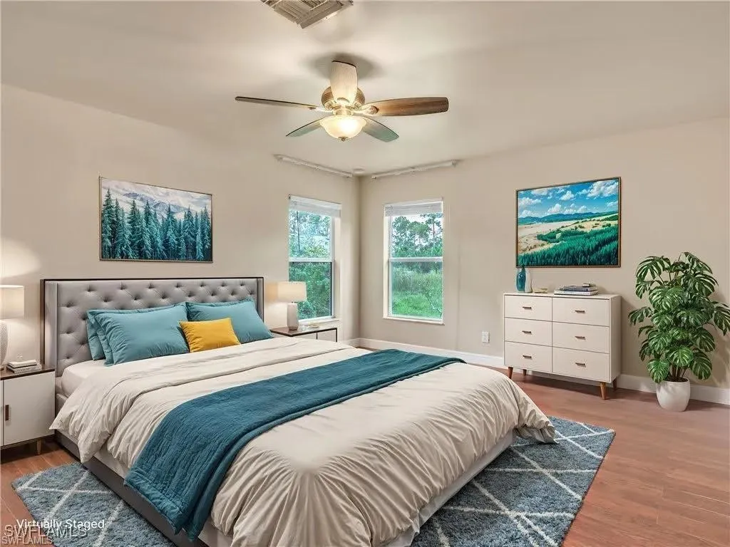 Beautiful 4 bed / 2 bath canal-front home with 1,802 sq. ft., 2-car garage, and split floor plan. Built in 2006, featuring wood floors, vaulted ceilings, spacious master suite with tub & shower, and open kitchen.