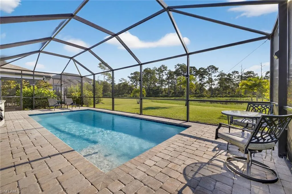 Welcome to this beautifully designed 4-bedroom, 2-bathroom HEATED pool home built in 2022 and located on a quiet cul-de-sac street in North Fort Myers. Enjoy the peace of mind of a no flood zone and very low HOA fees.