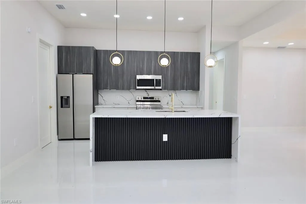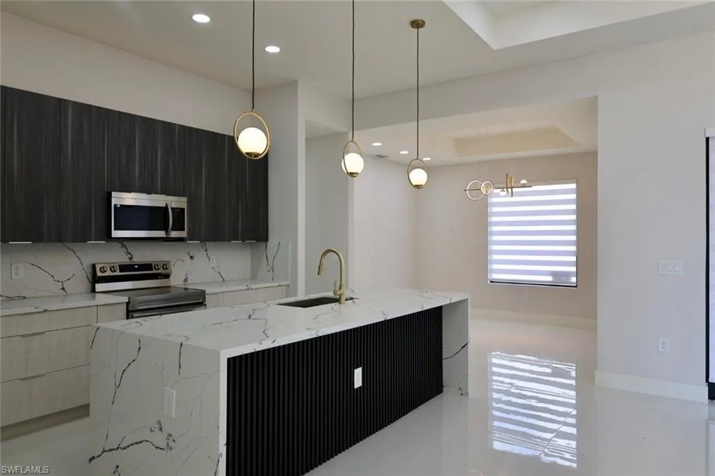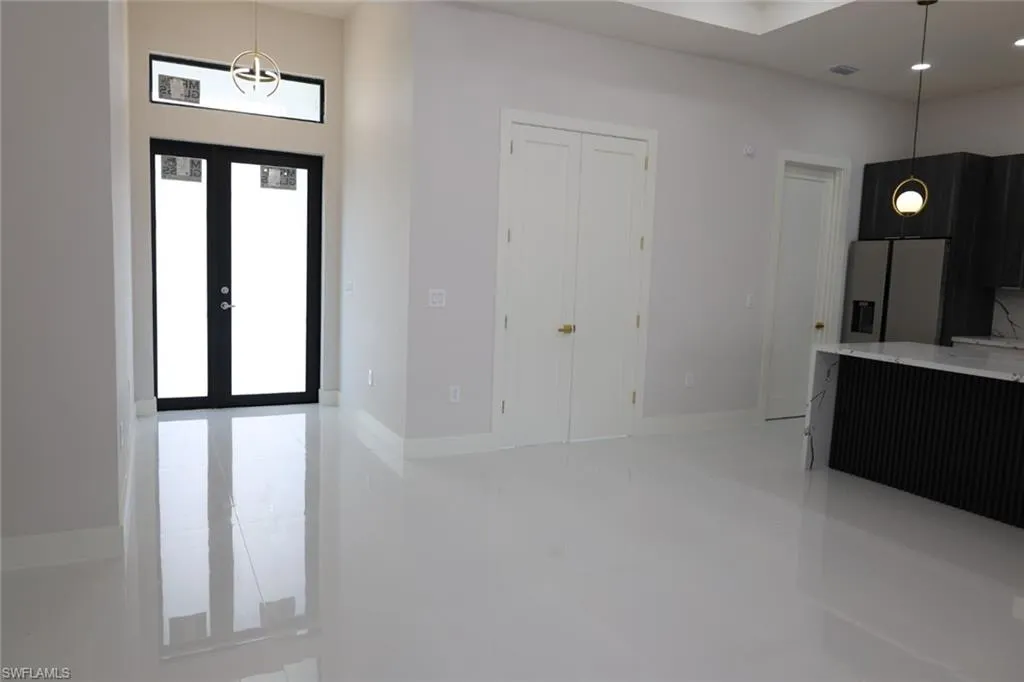 Introducing an exquisite new construction property that perfectly blends modern elegance and comfort, ideally situated on a desirable corner lot near State Road 82 and Sunshine Blvd. This stunning home features three spacious bedrooms plus a versatile den, ideal for a home office or guest room. Enjoy the luxury of two beautifully appointed baths and the seamless flow of tile flooring throughout the entire house, enhancing both style and practicality. Step outside to your own private lanai, perfect for relaxing or entertaining guests. The coffered ceiling and impressive 9-foot doors add a touch of sophistication and grandeur to the living spaces. Thoughtfully designed closet cabinets provide ample storage, while the charming paver driveway completes this beautiful property.