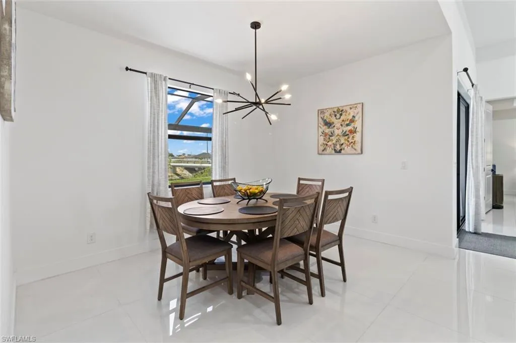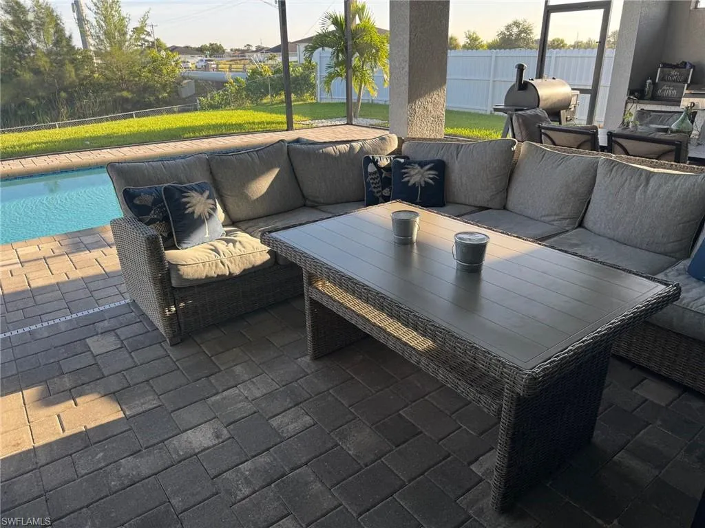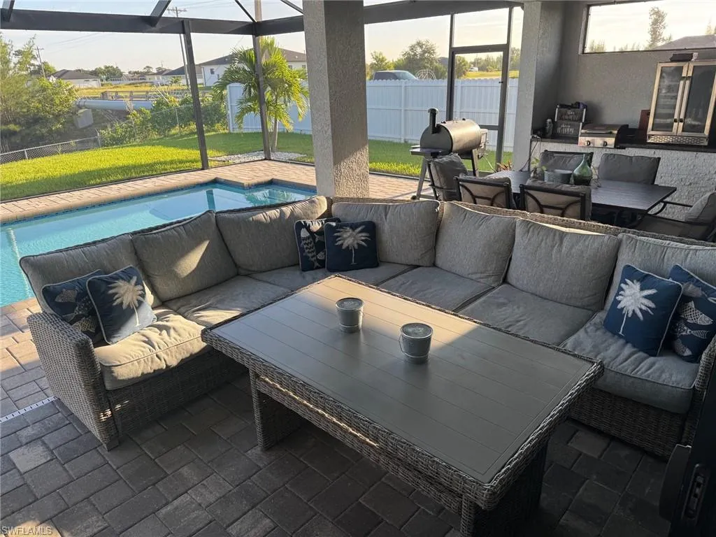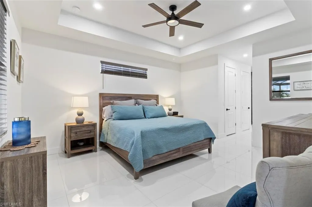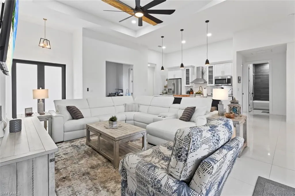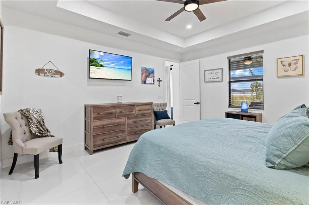 You’ve got to see this one before it’s too late. Stunning and Contemporary canal front home in great location. The salt water pool is heated with pool cage and picture frame screens to enhance the views of the Hermosa canal. There is so much to love about this home. The huge covered lanai, outdoor kitchen, fully fenced yard and totally upgraded interior is just the beginning. The great room is a totally open plan with recessed ceilings, wood beams and great views. It’s on city water and sewer with all assessments paid at closing. It’s not in a flood zone, so no Flood Insurance required here. The seller is offering $2,500 towards the buyers closing costs. There are three large bedrooms plus a great den/office, 3 full baths including a direct access pool bath. There is an amazing primary suite with recessed ceilings, two walk-in closets, a luxurious bath with soaking tub and separate shower, plus a second guest suite with direct access bath. The kitchen is a chef’s dream with two tone custom cabinets, quartz counters with oversized waterfall island, upgraded Frigidaire Stainless Steel Gallery appliance package, built-in microwave and separate vent hood, a wonderful pantry and frosted glass accent cabinet doors. The laundry is large with cabinets above the laundry area, a laundry sink and built-in storage area with shelves. The home also has hurricane impact windows/doors, 8ft. interior doors and sliders, and an Impressive 8 ft frosted glass double door entry. One of the best things about this home is the central location, just minutes from the Pine Island shopping corridor. It’s back yard and covered lanai face north which is a great to enjoy the wonderful sunrises and sunsets over the Hermosa Canal. This home checks all the boxes, it’s a must see.