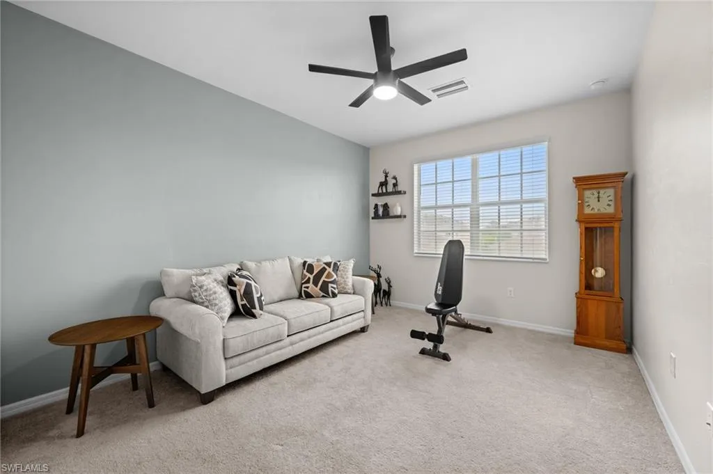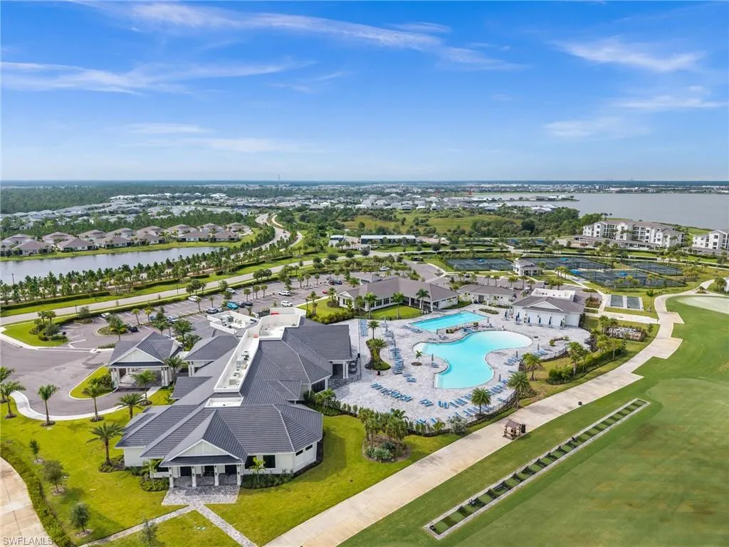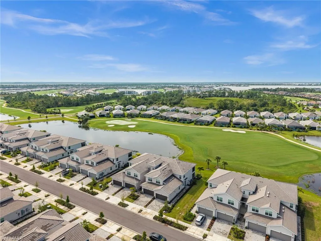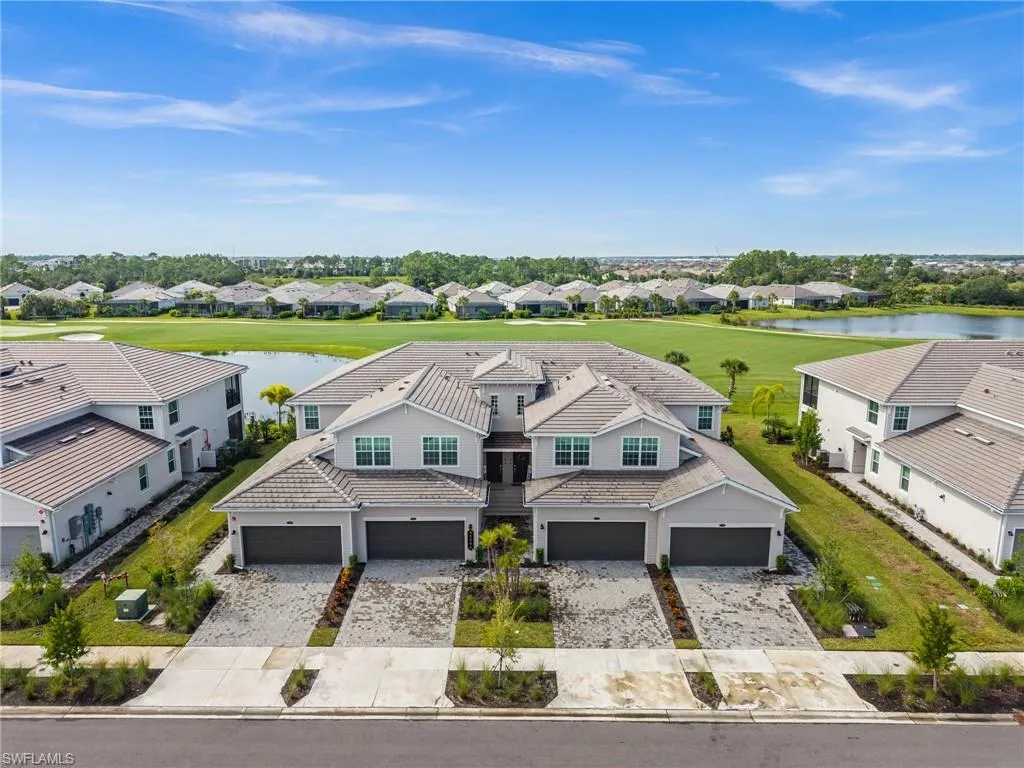 Experience resort-style living at its finest in this Bay Creek coach home at Babcock National. This 3 bedroom, 2 bathroom residence offers 2,110 sq ft under air and is perfectly designed for both comfort and elegance. Perched on the second floor with sweeping sunset views, the expansive 225 sq ft screened lanai overlooks the 16th hole of Babcock National’s championship golf course, creating an unmatched backdrop for entertaining or unwinding at the end of the day. The open floor plan flows seamlessly through spacious bedrooms and living areas, while the two-car garage with an extended bay provides ample space for storage or a golf cart. Ownership includes a full golf membership with access to a resort-style pool featuring a tiki bar, hot tub, and lap lanes, a state-of-the-art fitness center and day spa, pickleball, tennis, and bocce courts, plus the brand-new clubhouse and Enclave restaurant. As part of a bundled golf community, HOA fees also cover high-speed internet, water, building maintenance, and common area care, offering a low-maintenance lifestyle with exceptional value. Located just minutes from Founder’s Square in Babcock Ranch, you’ll enjoy a vibrant community with live events, food trucks, and farmers markets right at your doorstep. Whether you’re seeking a seasonal retreat, year-round residence, or investment property, this home embodies the best of Southwest Florida living with luxury, convenience, and community.