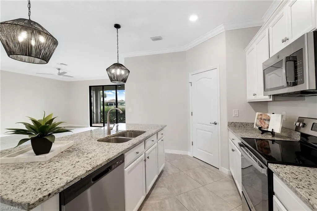 ANNUAL RENTAL AVAILABLE NOW @ $3,400/MONTH. This beautiful Trevi home is located in The Place at Corkscrew, one of Estero’s most sought-after amenity-rich communities. The residence offers 4 bedrooms and 3 full bathrooms, with a thoughtfully designed kitchen featuring custom cabinetry, a large island, granite countertops, and stainless steel appliances. The open great room flows seamlessly to a screened and covered lanai, creating the perfect space for indoor-outdoor living.