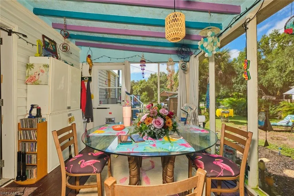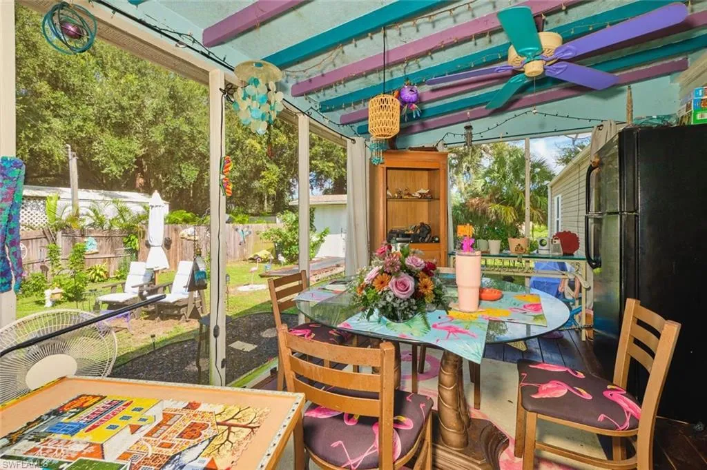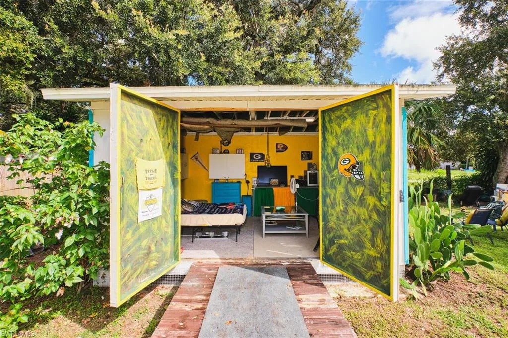 Step outside to your very own Florida oasis! Spend lazy afternoons cooling off in the large above-ground pool, mix up cocktails at the tiki bar, or gather with friends and family for cookouts or bonfires in one of the several outdoor hangout spots. The spacious screened porch (added in 2020) is perfect for a quiet morning coffee or breezy bug free evenings. Plus, the oversized shed has been converted into a guest efficiency, giving you extra space for visitors or hobbies.