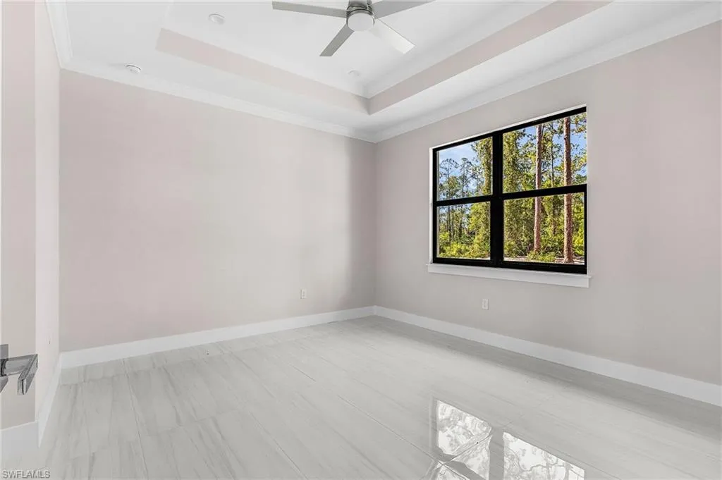 Gorgeous, 3 bedroom PLUS den, NEW CONSTRUCTION situated on a 2.27 acre lot. No restrictions or HOA fees. This inviting home showcases great attention to details and evident high quality built. Featuring 9’4″ high ceilings with 10′ tall tray ceilings; tile carried out throughout the house creating a clean, seamless, and spacious look; a fresh modern kitchen with all CUSTOM cabinets, quartz countertop, a waterfall island; crown molding on main living area and master bedroom; 6″ baseboards throughout; 8-ft doors; and beautiful, modern bathrooms featuring vessel sinks and custom cabinetry. ALL IMPACT RESISTANT WINDOWS AND DOORS. Automated sprinkler system and asphalted driveway. Located in the rapidly growing Golden Gate Estates area, just a short driving distance from the brand new Publix on Oil Well Rd. and the various retails stores at the brand new Randall Curve. And to top it off, close proximity to the 150 acre Big Corkscrew Island Regional Park and great Naples public schools, making this home the perfect investment for your family! MLS pictures are a representation of house of same model, not actual property. CHECK OUT THE VIDEO TOUR OF A SIMILAR MODEL HOUSE!