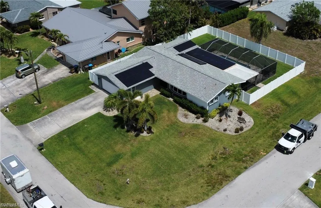 Welcome to Your Dream Home in SWFL! Step inside this beautifully designed 3-bedroom, 2-bathroom home offering 1,775 sq ft of comfortable living space on a spacious corner lot. The open-concept layout features large white tiles throughout the main living areas, while wood-look tile adds warmth to all bedrooms.The modern kitchen boasts stainless steel appliances, sleek quartz countertops, and ample storage, making it a chef’s delight. Outside you and your furry friends will enjoy the fully fenced-in yard. Relax in the large heated pool with a pavered pool deck! For peace of mind, the home is equipped with Accordion storm shutters on all windows and sits in an X500 flood zone (no high-risk flood insurance required). Plus, with solar panels, you’ll enjoy incredibly low electric bills and energy efficiency. Located in a prime central location, you’re just minutes from shopping, dining, and more. On City Water And Sewer With All Assessments Paid!! This home is move-in ready and waiting for you! Don’t miss out—schedule your showing today!