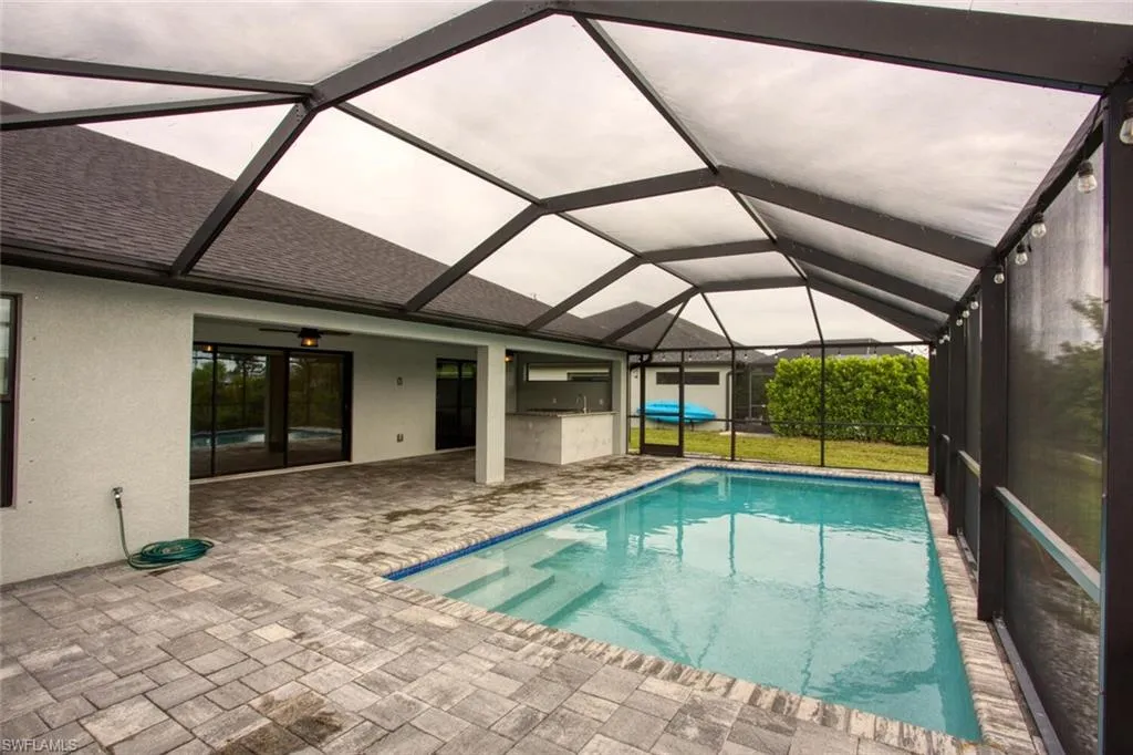Enjoy your days swimming in the sparkling pool while overlooking the expansive canal and its abundant wildlife. The home’s curb appeal shines with a pavered driveway and pool area, and energy-conscious buyers will appreciate the foam insulation in the walls and attic — a major upgrade that provides outstanding energy savings year-round.