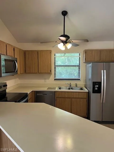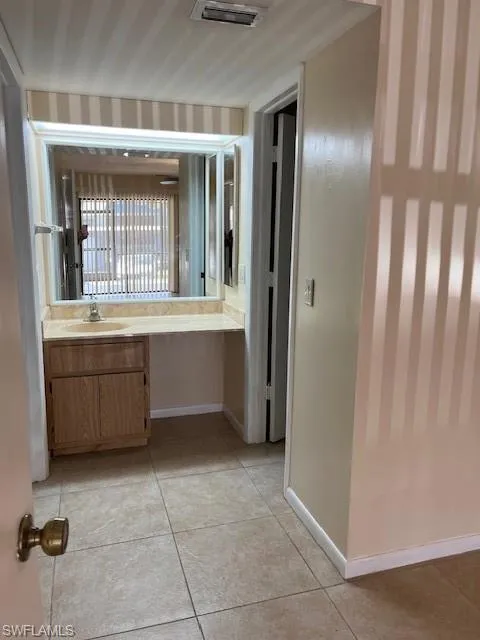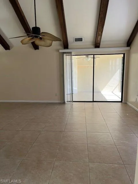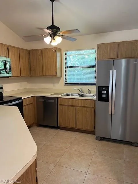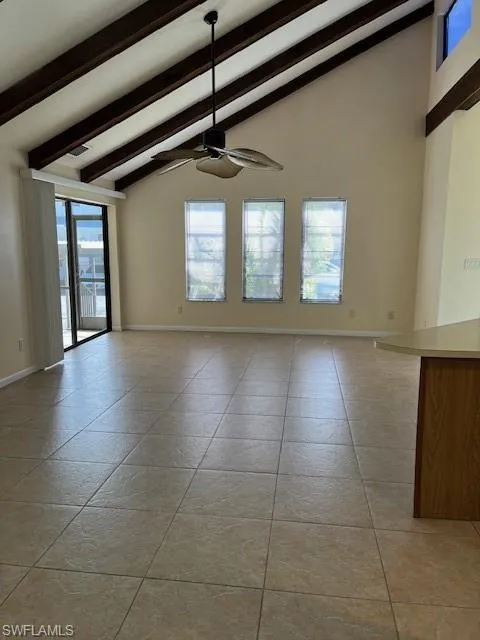 Come see this 2-bedroom 2-bath condominium in a prime location near beaches, dining, shopping and schools! This End unit has high Vaulted ceilings with windows that let in a lot of natural light. There are tile floors throughout the unit including the lanai. Stainless steel appliances in the kitchen which is open to the great room. Wet bar area. Large dining area which can accommodate large dinner parties. Golfside community has low fees, water, trash removal, tennis courts and a community pool that is all included in your HOA. This property is located close to beaches, FGCU, shopping and restaurant.